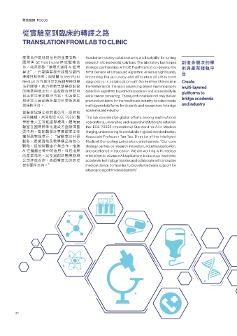 團 隊 與 GE Healthcare 達 成 戰 略 合 research into real-world solutions. The laboratory has forged 創造多層次的學