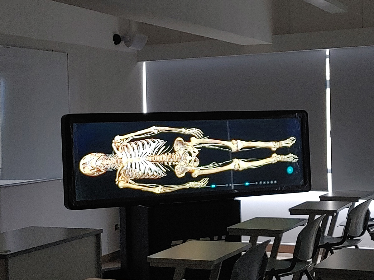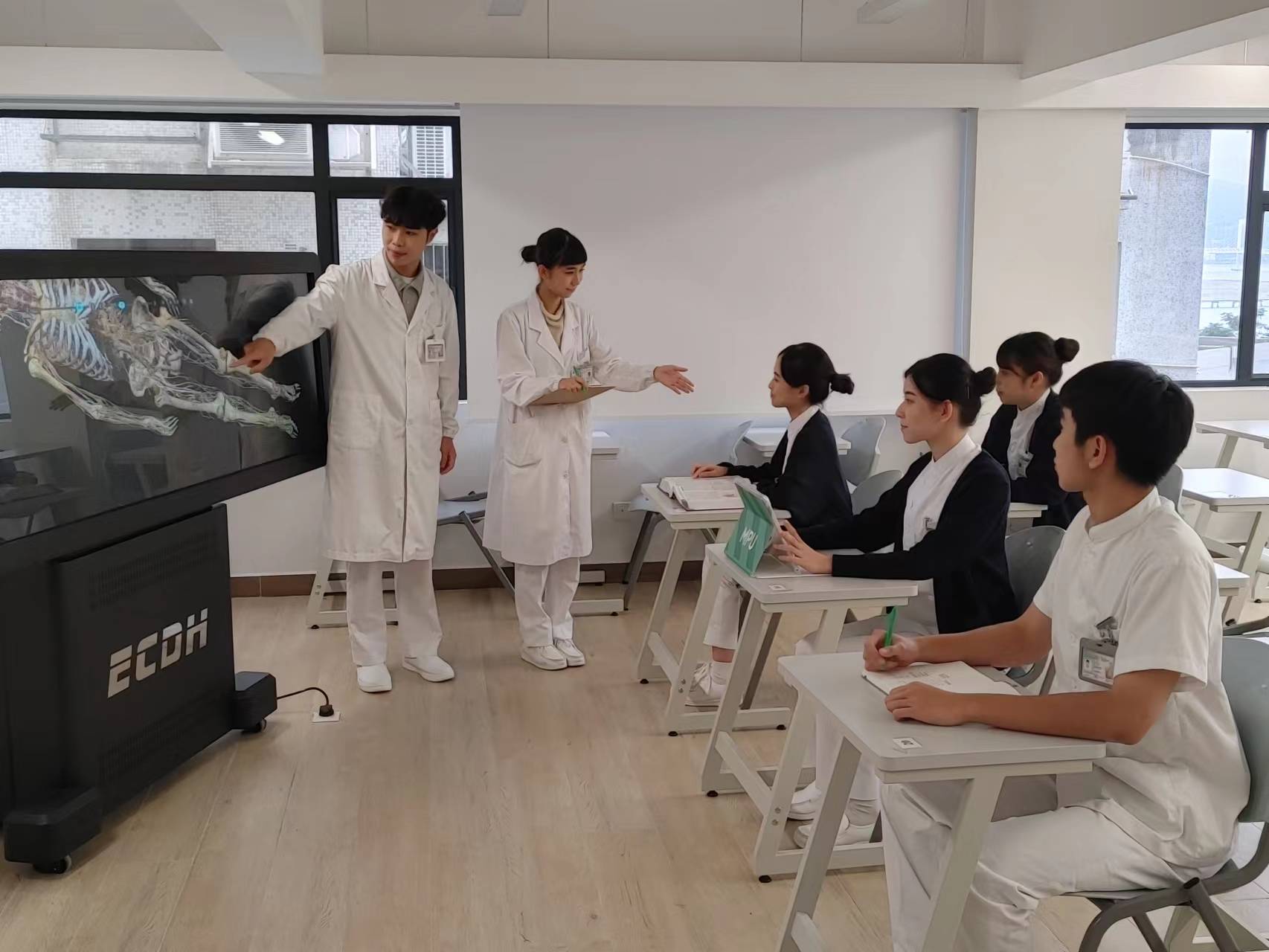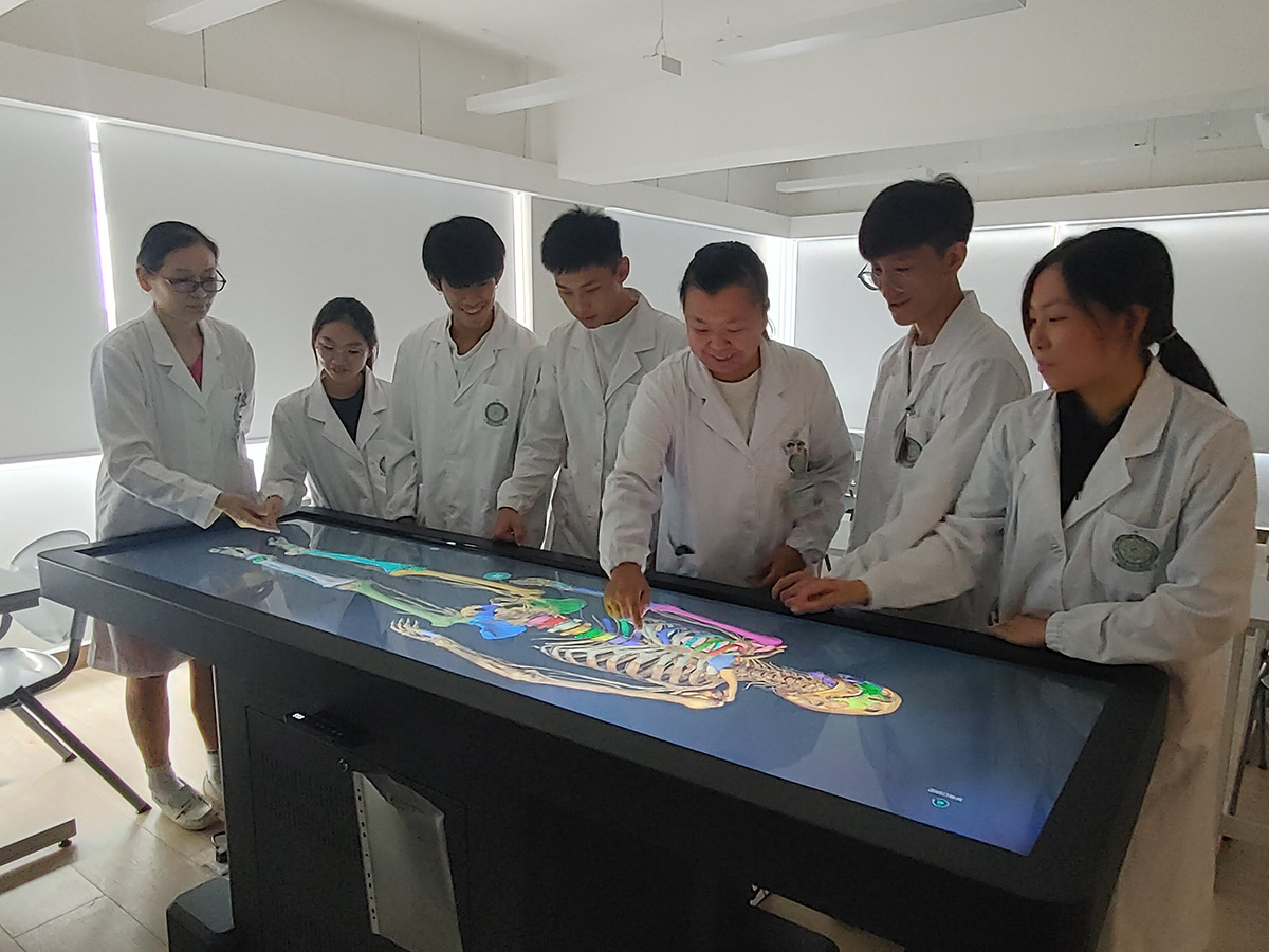 In order to stimulate students’ interest in learning anatomy, and improve their learning outcomes, the Nursing Academy equips a "3D Virtual Anatomy System". The main features of the system are a high-precision virtual human body, a real structure with real human body proportions, and with a Chinese-English bilingual option. In addition, the touch-screen interactive operation and the horizontal viewing can realize the cutting and observation of human structure at any angle and at different levels. It integrates general anatomy, partial anatomy, and sectional anatomy and uses the virtual cutter for a continuous display to construct a virtual anatomical combination model to build a three-dimensional space structure for learners.