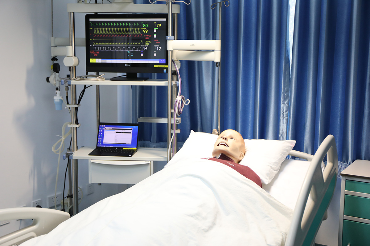 Fundamental nursing simulation teaching module mainly consists of a basic nursing and health assessment module with 6 simulated general wards and 30 simulated beds. In the simulated ward environment, students can use nursing skills trainer, intelligent cardiopulmonary auscultation models, standardised case models for abdominal palpation, and Harvey high-fidelity cardiopulmonary simulator to carry out nursing skill training, health assessment and other basic courses and bridge courses.