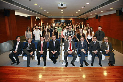 Students welcome Prof. Nuno Crato (left 4), Minister of Education and Technology, Portugal |