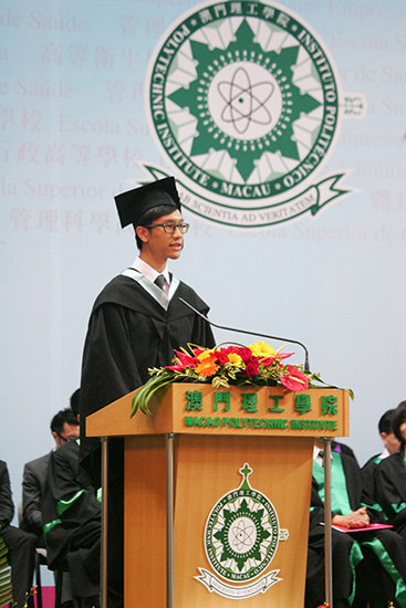 In his speech, the student representative expressed his thankfulness to the Macao S.A.R. Government, the community, the teachers and staff for their teaching and advice in the past years.