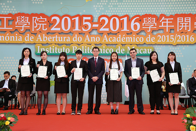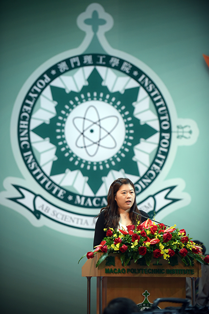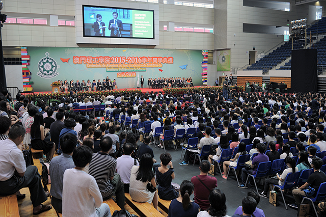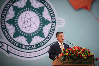 On Friday 21st August Macao Polytechnic Institute held its Opening Ceremony to welcome 804 freshmen. President Lei Heong Iok encouraged all the freshmen to read widely, think wisely and exert themselves to be practical and innovative. During the ceremony President Lei extended his warmest welcome to all the new MPI family members who outstand from more than 7,000 applicants. Among them, he said, were “excellent students from local secondaries, top candidates eligible for admission to key mainland China universities, as well as exchanges students from Taiwan, South East Asia, Portugal, the UK and the US”. President Lei stressed that MPI encourages students to think independently, to be keen to discover problems, and to take the opportunities available at MPI to both think about the past and be creative for the future, living to the full MPI’s motto: “Knowledge, Expertise, Global Vision”. MPI is the first higher education institution in Macao to have achieved a successful Institutional Review by the UK’s Quality Assurance Agency for Higher Education, and President Lei said he hoped that in this new academic year MPI would carry on with its communal efforts to maintain and enhance its teaching and learning quality, building a tertiary educational institution that conforms to international standards of higher education, and producing yet more high-quality professionals for the community.