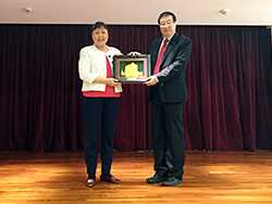 Professor Cui Mengfen, Acting Director of the School of Languages and Translation presents the appreciation certificate to Professor Chen Ping (1st from right) |