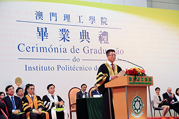 Meanwhile, the SAR government fully embraces MPI’s endeavors to capitalize on its unique features and leverage its competitive advantage, as well as its proactive initiatives, by inviting local and overseas education quality assurance agencies to conduct academic accreditation reviews. It applauds MPI’s timely adoption of effective measures that fulfill its three social functions of enhancing teaching and research as well as serving the community, thus making its unique contributions to deepening the utilization of Macao’s human resources and broadening its talents pool. The Chief Executive ended his speech by calling upon MPI graduates to put what they have learned from MPI into practice, and to make contributions to Macao as a means to realize their ultimate dreams in life.