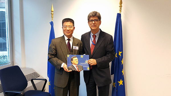 The hosts from the European Commission recognised and commended MPI for its contributions in promoting the teaching of Portuguese and in training Portuguese teachers throughout the years. Both parties reviewed the outstanding progress of collaboration, including MPI's conferment of an honorary professorship on Professor José Manuel Durão Barroso, former President of the European Commission; a joint Master's degree in Translation offered by MPI and the EC; MPI's participation in the EC's Erasmus Mundus programme, and the joint efforts of MPI and EC in training over 100 Portuguese teachers and translators from the Chinese Mainland, Macao and neighbouring regions. The host also demonstrated several professional software packages in translation and social media which are currently in use by the Commission. Both parties further explored areas of cooperation and have reached consensus on various issues.