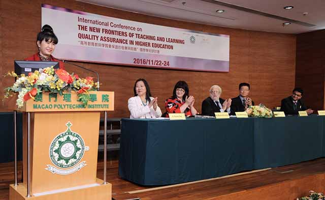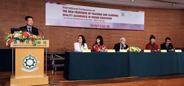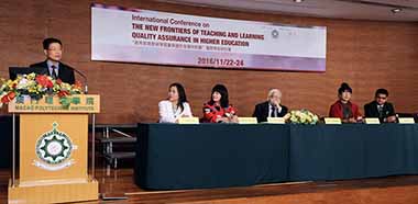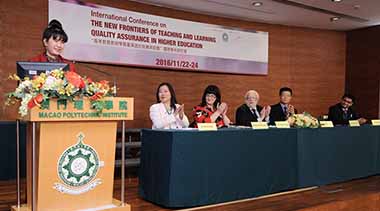 The International Conference on The New Frontiers of Teaching and Learning Quality Assurance in Higher Education, opened on 23 November 14:30 at MPI. The opening ceremony was officiated by Professor Jianxin Zhang, President of the Asia-Pacific Quality Network, Professor Alberto Amaral, President of the Agency for Assessment and Accreditation of Higher Education, Portugal, Ms Maureen McLaughin, Head of Universities & Standards of the Quality Assurance Agency for Higher Education (QAA), UK, Dr Pauline Tang, CEO of THE-ICE (International Centre of Excellence in Tourism and Hospitality Education) and Vice President of INQAAHE board, Dr Jagannath Patil, Immediate Past President of the Asia Pacific Quality Network together with Professor Lei Heong Iok, President of MPI. In his opening address, Professor Lei Heong Iok stated that this is the eighth conference that MPI have organised in the series of quality assurance; Professor Lei added that quality assurance on teaching and learning is the primary task of higher education. Higher education institutions are committed to provide the best possible learning experience for students and to foster high quality professionals who contribute to national and regional development. Professor Lei explained that MPI started to take up external academic review exercises in 2011 in order to benchmark its education provision to internationally recognised quality standards. MPI has been making significant progress and has succesfully completed the Institutional review by QAA; also, the majority of MPI's programmes have already passed the programme accreditation or professional certification.