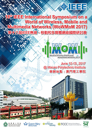 The 18th IEEE International Symposium on a World of Wireless, Mobile and Multimedia Networks (WoWMoM), organized by Macao Polytechnic Institute (MPI), the Institute of Electrical and Electronics Engineers (IEEE), IEEE Computer Society, the Technical Committee on Computer Communications, Queen Mary University of London, UK, and Missouri University of Science and Technology, USA, will be held at MPI during June 12-15.  Over 130 scholars and experts from around the world will gather in Macao to discuss the latest global trends in science and technology. The symposium covers a wide range of technical aspects of wireless communications, the Internet of Things, big data and smart cities. Topics include energy-efficient multimedia networks, next-generation networks, wireless network analysis and optimization, context-awareness, wearables and social networks, localization and tracking technology, analytics and machine learning, mobile data offloading, multimedia system optimization, resource management and quality-of-service provisioning.