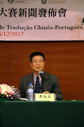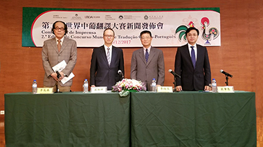 The 2nd World Chinese-Portuguese Translation Competition press conference was held on 6 December at 16:00 at MPI. The press conference was officiated by Mr. Sou Chio Fai, Director of the Tertiary Education Services Office, Professor Lei Heong Iok, President of MPI, Professor Marcus Im, Vice President of MPI and Professor Li Changsen, team leader of the academic group of the competition, to introduce the regulations and details of the competition. Director Sou pointed out that as Macao plays a very important role for training of Chinese-Portuguese bilingual talents, the Tertiary Education Services Office offers full support to Macao higher education institutions to promote Chinese-Portuguese speaking talents. Last year, with the initiative proposed by MPI, the Tertiary Education Services Office and MPI joined hands in organising the 1st Chinese-Portuguese World Translation Competition and it was very successful. Mr. Sou hopes to attract more teams from all over the world to participate in the 2nd World Chinese-Portuguese Translation Competition. President Lei, who wishes for the full success of the competition, also affirms that MPI has always been dedicated to the teaching of Chinese-Portuguese translation. The purpose of organising this competition is to strengthen the exchange of Chinese-Portuguese translation techniques among students of higher education institutions from all over the world, to nurture professional translators of Chinese-Portuguese, and to contribute to the development and promotion of Portuguese teaching and learning, taking advantage of MPI’s long history of Chinese-Portuguese translation.