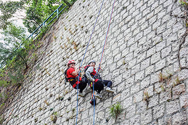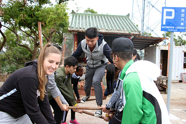 In spite of the cold weather, more than 30 participants who were from China, Portugal, Brazil, and Cape Verde arrived at Hac-Sa Reservoir Country Park, the starting and ending point of the competition, in the morning. The students were randomly separated into four groups to pass at least 5 out of 8 checking points that were set along the 8100-meter Coloane Trail, and there was one challenge they had to finish at each point such as “Trust Ladder”, “Electric Fence”, “Minefield”, “Keypunch”, and “Abseiling”, etc.