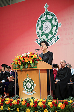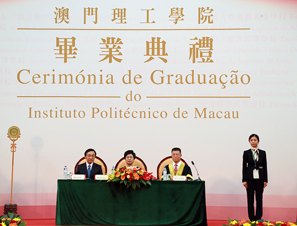 Dr. Tam Chon Weng, Secretary for Social Affairs and Culture conferred degrees on the outstanding graduates.