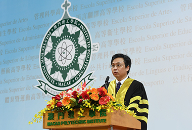 The Chief Executive Dr. Chui Sai On pointed out in his speech delivered at the Graduation Ceremony that the Macao SAR government is implementing the development strategy of “Education-driven Prosperity for Macao” and “Building Macao by Capable Talents” to fully advance the balanced development of education, and to promote the social fairness by educational fairness. In light of the effective Higher Education Regime, it fosters a new stage of development in higher education. The government will encourage higher education institutions to reinforce and create the specialities and unique characteristics of local education; promote the combination of industry, universities and research institutes to improve the capacity of technological innovation so as to provide talents for the diversification of economic development; continuously optimize the education environment and facilities, enhance the teacher training, and ensure the sustainable elevation of education quality. Dr. Chui mentioned that the government will continuously support MPI’s advantages of nurturing practical talents and its efforts to launch new subjects, offer more highly qualified courses, and promote cross-disciplinary research. It also supports MPI's efforts to build Macao into a base for the training of Sino-Portuguese bilingual professionals and forming an extensive talent pool, thus accelerating the formation of “One Centre, One Platform”, and participating actively in the construction of The Belt and Road Initiative and the Guangdong-Hong Kong-Macao Greater Bay Area. Dr. Chui encouraged the graduates and teenagers entering the new era with the support of the Motherland and joining the new phase in the development of Macao. This epoch has broadened the scope of development, and the young people are carrying the mission of the future on their shoulders. He wished that the graduates will cherish their time, work hard and learn hard, maintain good health, establish their goals, gather their courage, to step on their life's pathway and to pursue their dreams.