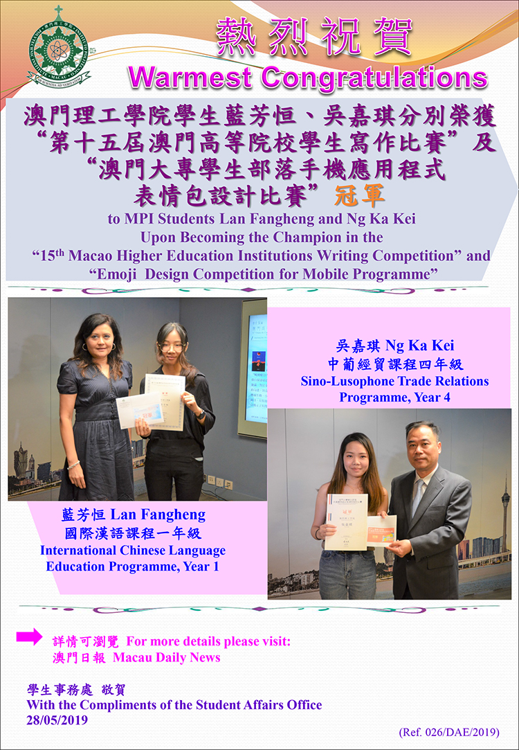 Macao Higher Education Institutions Writing Competition" and "Emoji Design Competition for Mobile Programme"