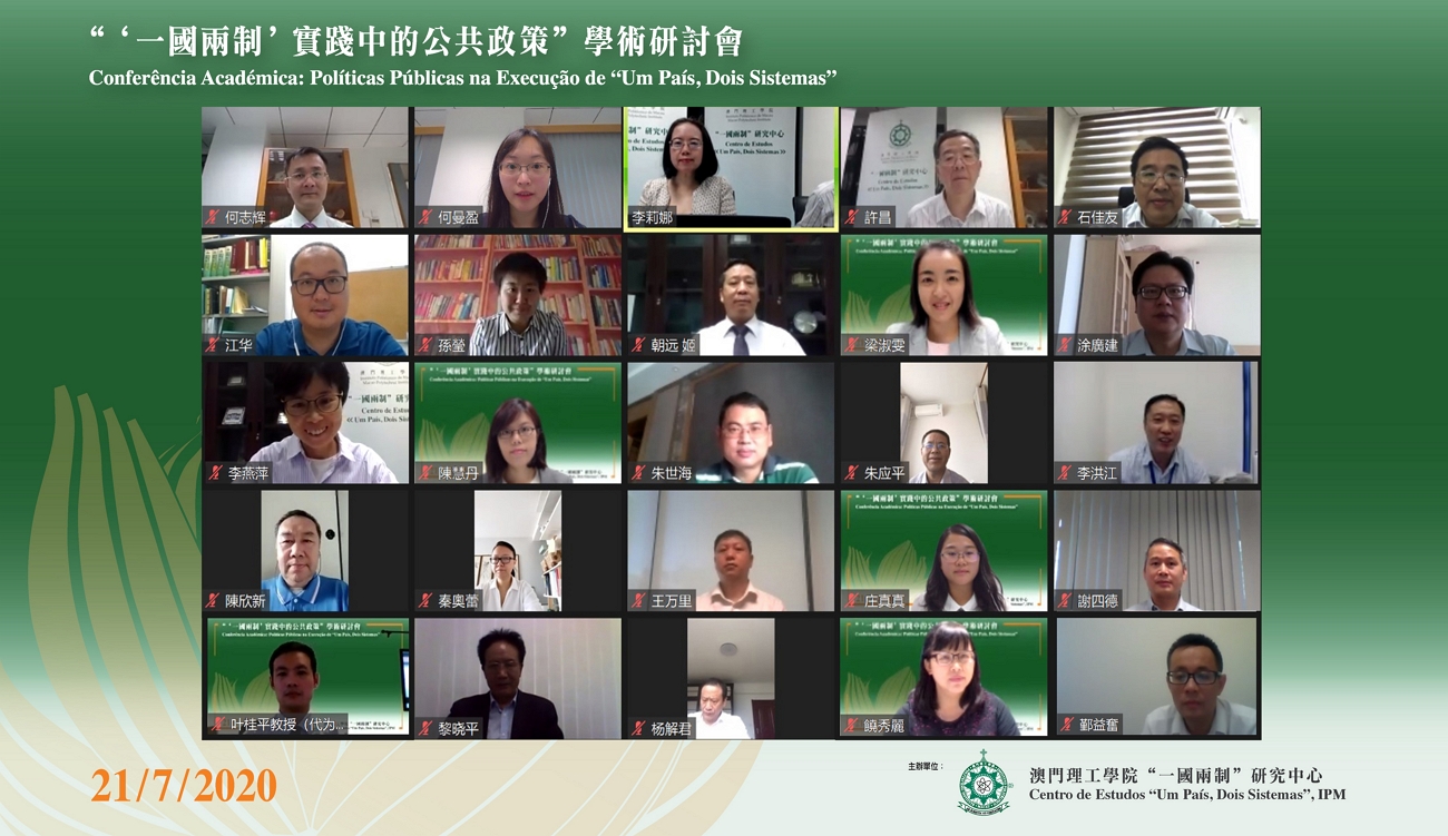In order to bring together experts and scholars of different disciplines to discuss the theoretical and practical aspects of the new issues arising during the implementation of the “One Country, Two Systems” policy, including matters covering the central-local relationship, anti-pandemic cooperation mechanism, public health, coordination of economic and social development, and national security, the “One Country Two Systems” Research Centre of the Macao Polytechnic Institute (MPI) held an online seminar on “Public Policy in the Practice of ‘One Country, Two Systems’” on 21 July 2020. The online seminar attracted more than a hundred interested parties, and the Seminar was lively and interactive.