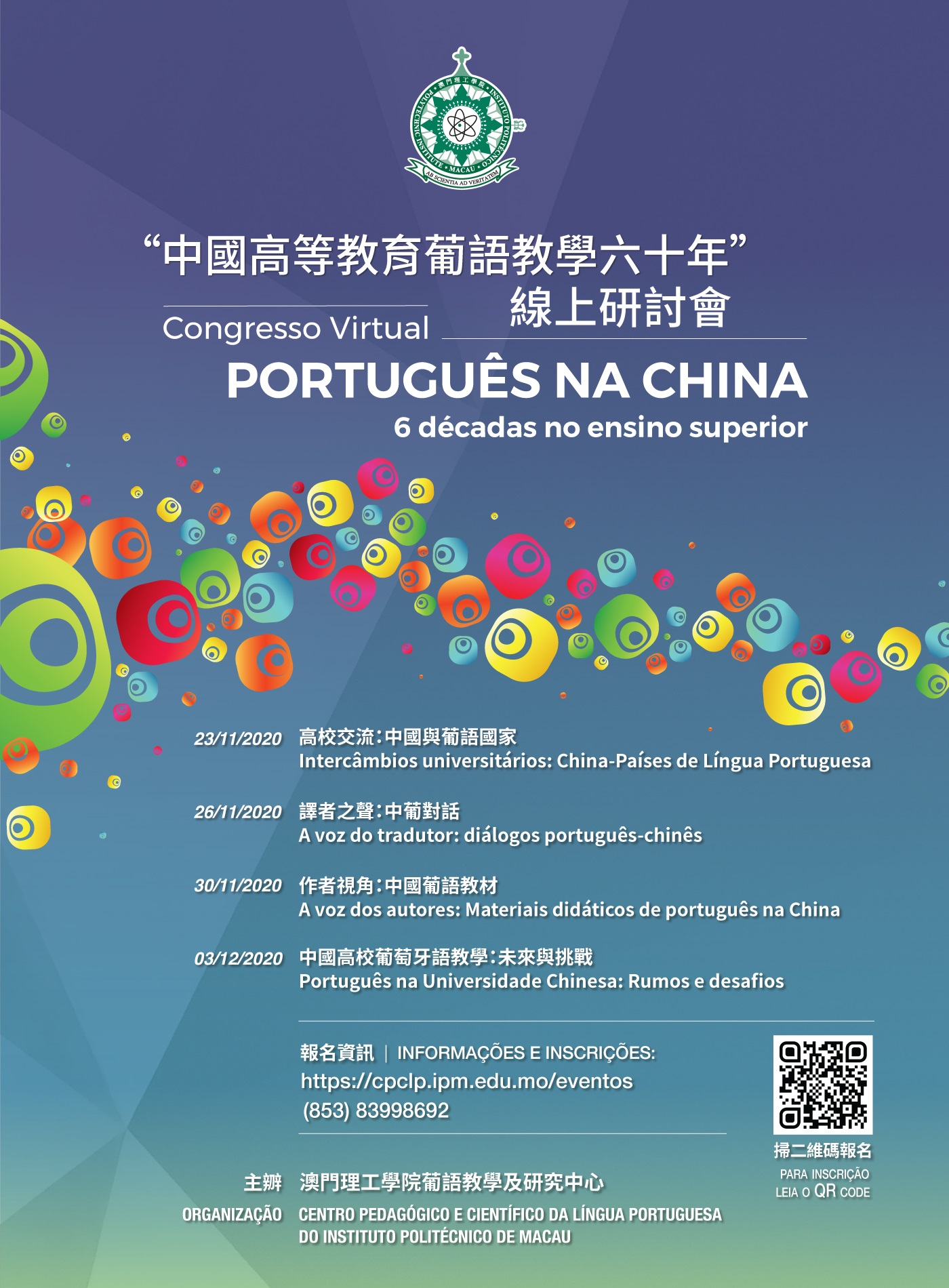 Since the establishment of the first Portuguese language degree programme in 1960, Portuguese language teaching in higher education in China has undergone 6 decades of development. In order to review and summarize the development of Portuguese language teaching in higher education in China, promote the construction of the “Chinese-Portuguese bilingual talent training base” in Macao, as well as to leverage the advantages of Macao as the “platform between China and Portuguese-speaking countries” to enhance the level of Portuguese language teaching and research in China, the Centre for Portuguese Studies of Macao Polytechnic Institute (MPI) will hold the online conference on “60 Years of Portuguese Language Teaching in Higher Education in China” from 23 November to 3 December. Chinese-Portuguese scholars, Portuguese teachers in higher education, Chinese-Portuguese translators and other interested parties are welcome to sign up and participate.