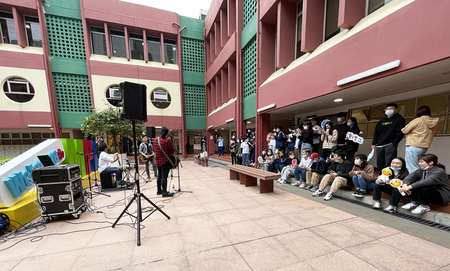 The "Exam Gas Station" met with an overwhelming response. Students from Portuguese-speaking countries were overjoyed with the vigorous activity content. They stated the distribution of the cheering mascot and hot beverages during the winter was thoughtful and heartwarming, showing a spirit of cohesiveness and caring from MPI. Senior students said that the activity was positive and attentive, and they appreciated the ingenious efforts from the Student Affairs Office and Student Union. This time, the local band, F.I.D.A., was specially invited to perform at the main campus garden, spreading blessings and encouragement to students through their passionate live gig throughout the afternoon. Ng Ka Kei, the chairman of the Student Union, who co-organised the event, hopes that the event will encourage students to overcome the final exams positively and confidently, supporting each other on the road of learning, and moving forward courageously.