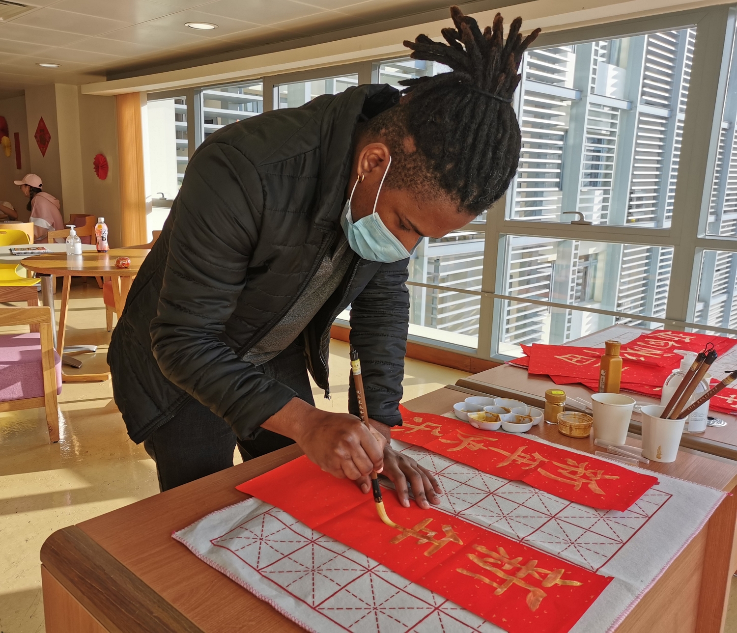 During the Chinese New Year, there was a strong festive atmosphere of the Spring Festival with flower blossoms around the MPI campus. Ms Laidinha, a Cape Verde student of the International Chinese Language Education, expressed that MPI integrated the Chinese and Western cultures. By putting up the festive decorations, learning to make dumplings and writing the spring festival couplets with her classmates, she learned about traditional Chinese culture. Mr Rivaldo, a student of the same programme, learned to write couplets attentively. He also sent his heartfelt wishes to his schoolmates in Putonghua, wishing that students from the Lusophone countries would learn more about Chinese history and culture through these various Spring Festival celebration activities. Mr Silvino, a student from Sao Tome and Principe was interested in the Chinese Zodiac. Through the mobile emoji stickers launched by MPI, he learned that 2021 is the Year of the Ox. During the activity, Silvino was told that his overall fortune this year would be good. Silvino said he would study hard to graduate with outstanding academic performance.