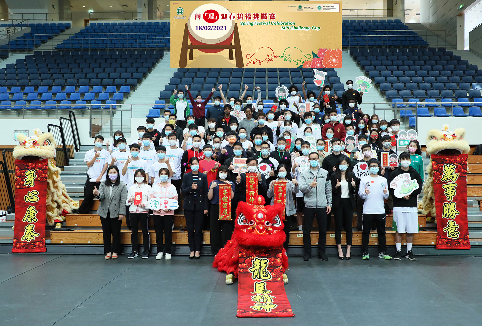 The Spring Festival Celebration - MPI Challenge Cup was held on 18 February, co-organised by the MPI Student Affairs Office and MPI Student Union, including seven kinds of activities on the themes of spring festival and Guangdong-Hong Kong-Macao Greater Bay Area, with more than 100 students participating to celebrate the Lunar New Year. Professor Im Sio Kei, President of MPI; Ng Ka Kei, Chairperson of MPI Student Union; and Chau Sin Kwan, the representative of MPI Alumni Association officiated at the Challenge Cup and took part in a traditional eye-dotting ceremony to kick off a ceremonial lion dance. At the ceremony, Professor Im Sio Kei sent season’s greetings and blessings to teachers, students and alumni and those who are from abroad. He mentioned that the challenge game emphasised unity and cooperation, and encouraged all of them to strive to do their best and grasp all the opportunities in this coming year.