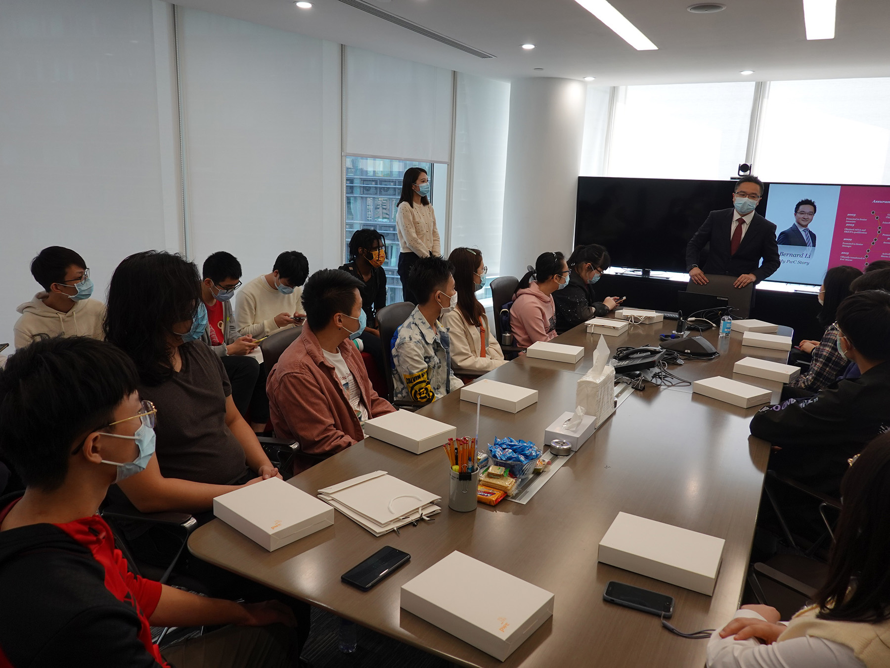Students of various majors, including Accounting, Computing, E-commerce, etc., visited PwC and were warmly welcomed by Mr. Li Ching Lap Bernard, a partner of the firm. PwC is one of the top accounting firms in the world and its main services include auditing, taxation, human resources, crisis management, etc. The visit enabled students to learn the corporate culture of PwC, the development opportunities of accounting professionals in the Greater Bay Area, as well as the high demand for cybersecurity talents in the era of artificial intelligence and big data.