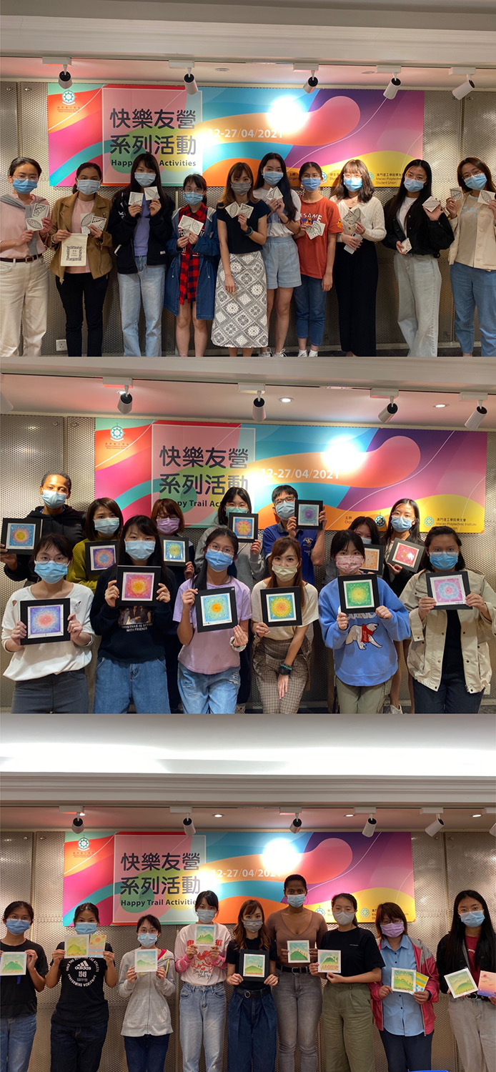 There are seven workshops in the “Happy Trail Activities” Series, including “Vibrational Singing Bowl Sound Therapy”, “Pastel Nagomi Art”, “Strength Training, Zentangle”, “Pastel Mandala Art”, “The How of Happiness” and “Mind Map”, which attracted the participation of more than a hundred students. Mr Lao, a master’s student in Big Data and Internet of Things, said that the Series was diversifying, as it did only enabled physical and mental development, but also improved the expression of thought, which enhanced his social skills. Through the workshop of “The How of Happiness”, it helped him to understand the ways of happiness, and improve his ability to resist stress. Ms Wan, who is majoring in Chinese-English Translation and Interpretation, said that she experienced the resonance of sound to achieve spiritual healing through the workshop of “Vibrational Singing Bowl Sound Therapy”, which allowed her to open up a new field of emotional relief. Laidinha, a student from Cape Verde, who is majoring in International Chinese Language Education, expressed that after participating in various workshops, she learnt to get out of her comfort zone and cultivate a positive philosophy towards life and values, which can help her face different opportunities and challenges in the future.