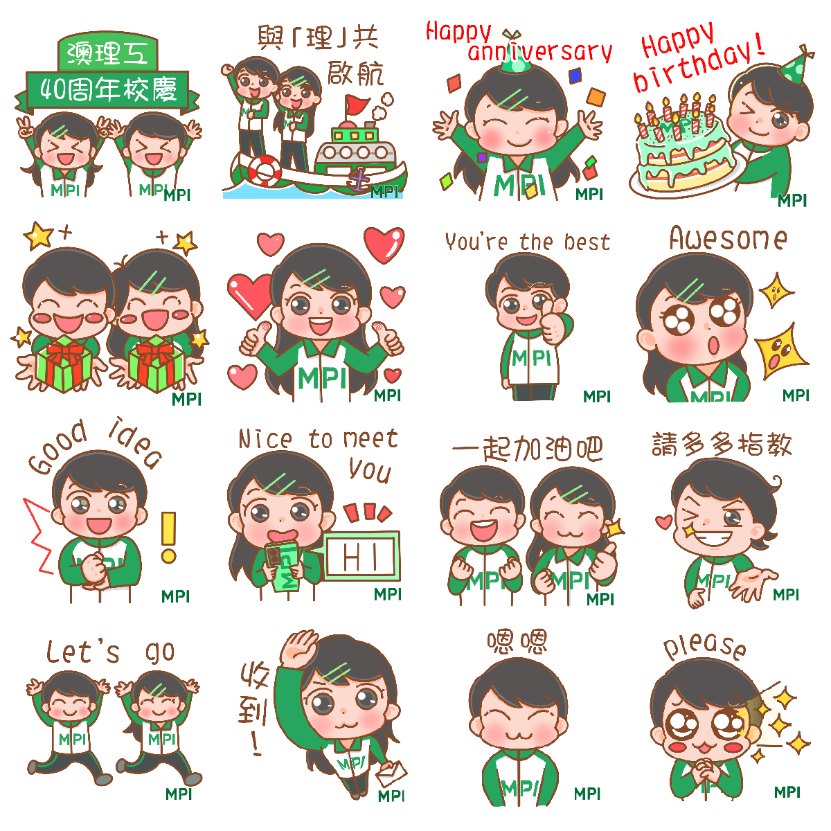 This latest mobile-app sticker pack features MPI’s 40th anniversary in alignment with the commemorative slogan “A New Journey with MPI on our 40th Journey", and it comprises 16 lively and thoughtful images of a couple of imaginative characters representing the Institute’s students, bringing vitality to them and encouraging them to realise their potential and welcome opportunities and possibilities with open arms. This sticker pack was launched while the Institute was accepting enrollments for its undergraduate and postgraduate degree programmes, and the prospective students and the general public could gain a better insight into the wonderful and diverse campus life through a different perspective presented by the anniversary stickers as the embodiment of MPI’s student-centred education philosophy.