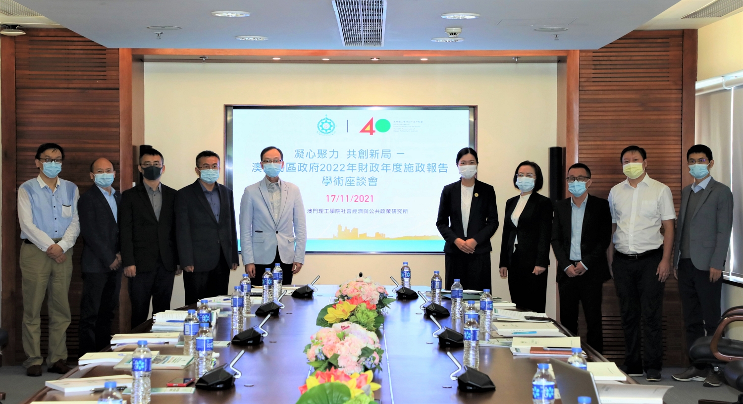 The Social, Economic and Public Policy Research Centre of Macao Polytechnic Institute (MPI) held an academic symposium on "Uniting Our Strengths and Creating New Situations—the Macao SAR Government's Policy Address for 2022 Fiscal Year" at MPI at 10:00 a.m. on November 17, 2021, to discuss the Macao SAR Government's general policy objectives of preventing pandemic, stabilizing economic recovery, guaranteeing people's livelihood, promoting diversity, strengthening cooperation, and planning development in 2022. The participants agreed with the Macao SAR Government's precise and pragmatic policies of "six aspects of adherence" and "six aspects of promotion", and held discussions in the aspects of integrating into national development, social and economic issues, public policy, education and culture, etc. and offered suggestions for the Macao SAR Government's management.