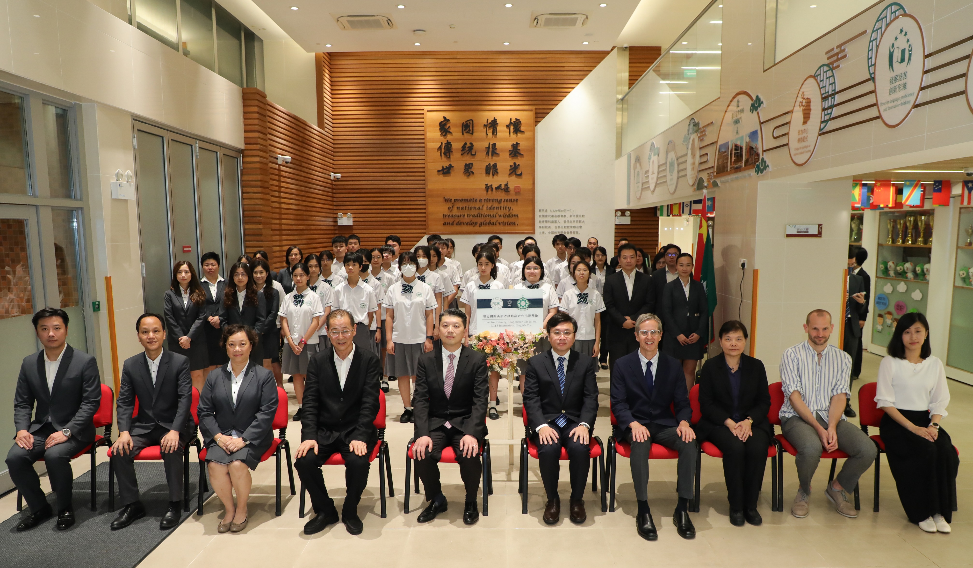 The grand ceremony of the base was held at Kao Yip Middle School. Dr. Ho King Lun, Deputy to the National People’s Congress and President of the Education Collaboration Association and School Board of Kao Yip Middle School; Prof. Marcus Im Sio Kei, Rector of Macao Polytechnic University; and Dr. He Cheng, Principal of Kao Yip Middle School, jointly unveiled the plaque for the base. The attendees of the lively ceremony also included Dr David Sansom, Director of MPU-Bell; Dr Lily Lim, Deputy Director of MPU-Bell; and several IELTS trainers, along with teachers and students from Kao Yip Middle School, who together witnessed the significant moment.