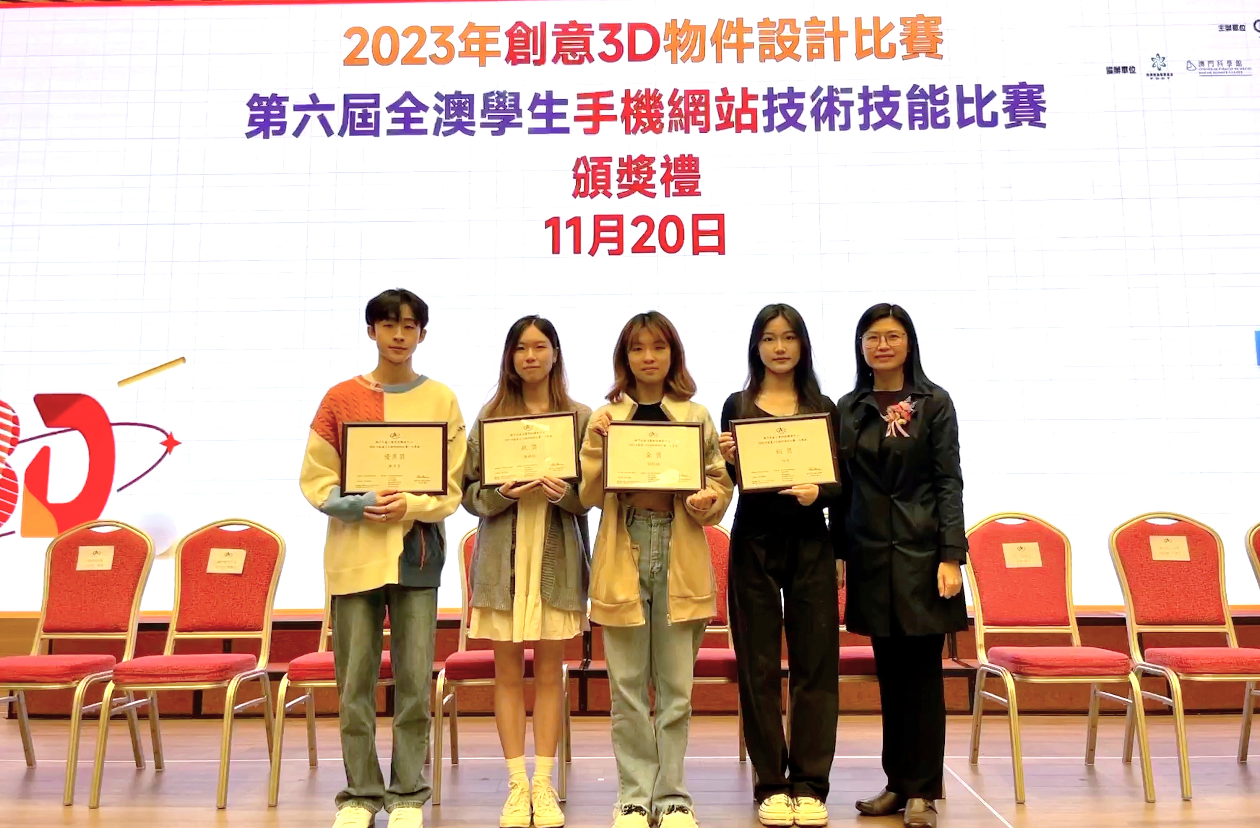 Students from Macao Polytechnic University recently participated in the "Creative 3D Models Design Competition 2023" organised by the Macau Productivity and Technology Transfer Centre. The competition attracted numerous participants from local and international universities. After a rigorous review by industry professionals, MPU students Kwan Hoi Io, Chan Pui I, Lin Yue, and Chan Cheuk Sing Justin were awarded the gold, silver and bronze Prizes, and the Merit Award, respectively. The outstanding performance of the students showcased MPU's teaching and research achievements in art design and innovative technology, and the award-winning students shared their creative ideas during the award ceremony. The University provides an excellent learning and research environment that will continue to enhance students' comprehensive capabilities and contribute to the development of high-tech industries and cultural creativity in Macao.