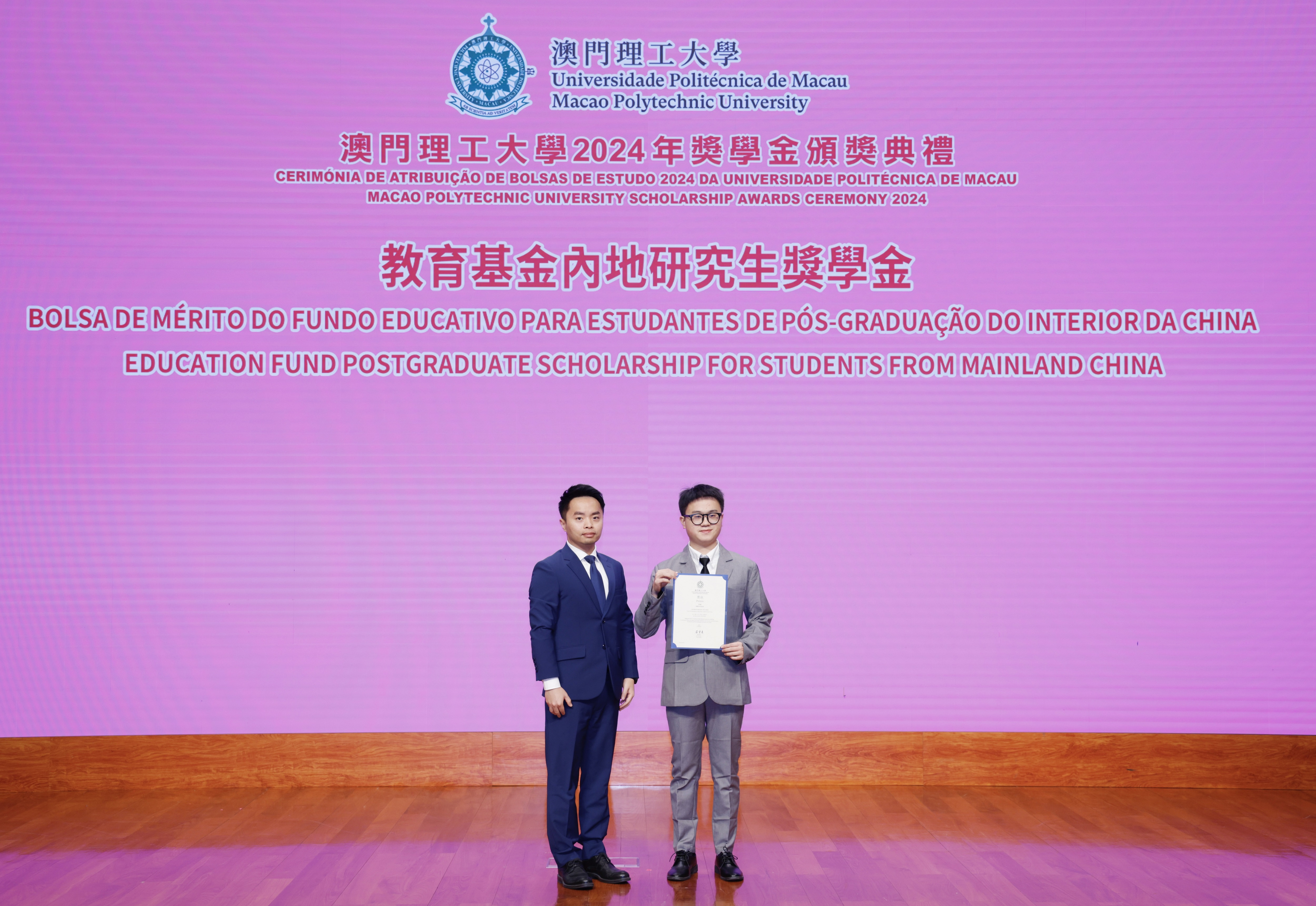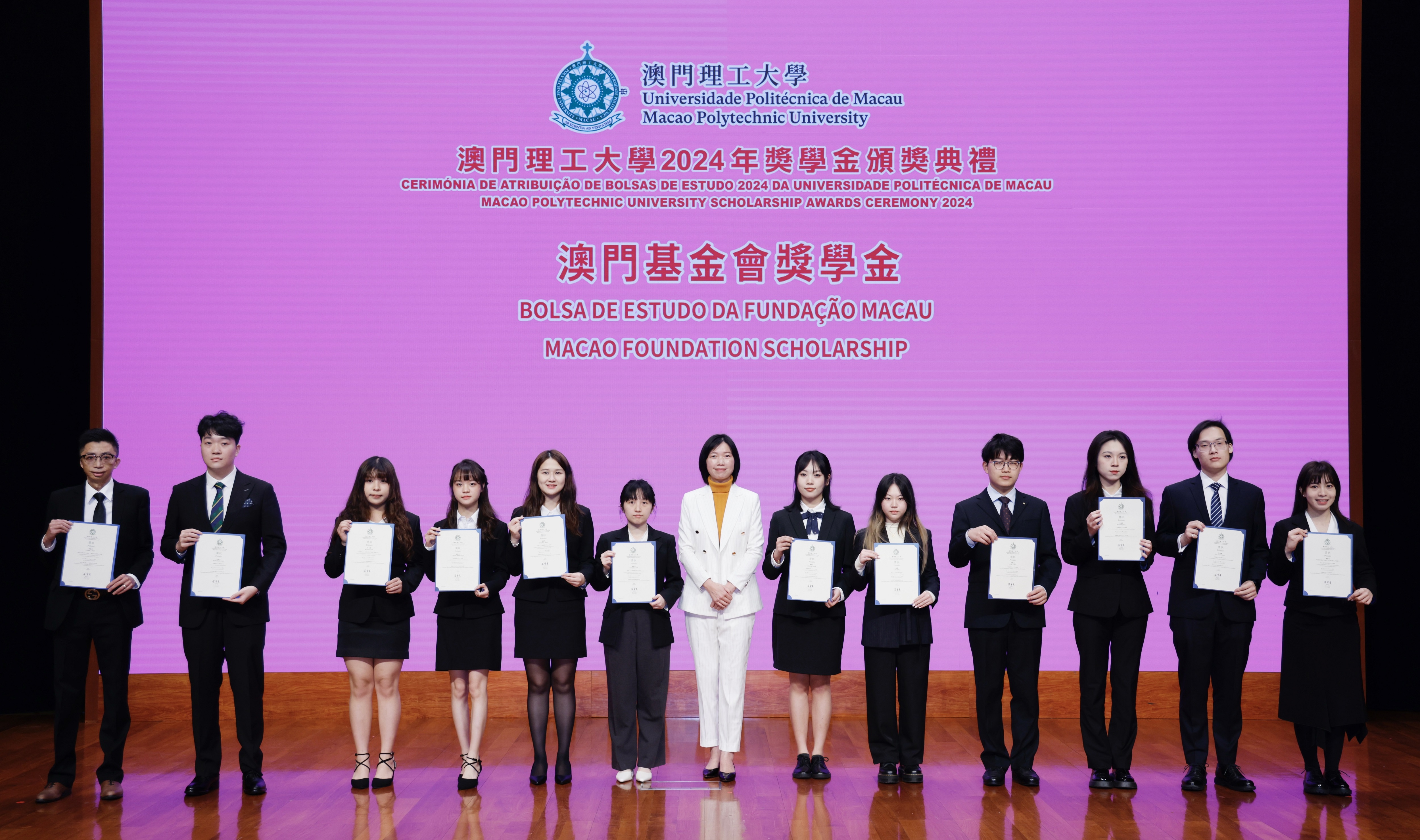 The Macao Polytechnic University held the 2024 Scholarship Award Ceremony at the University Auditorium on January 13. Scholarships were awarded to 600 outstanding students to recognise their excellent achievements in different academic and professional fields. MPU encourages students to uphold the spirit of love for the country and Macao, to pursue excellence and persevere, and to contribute to the development of both the country and Macao.