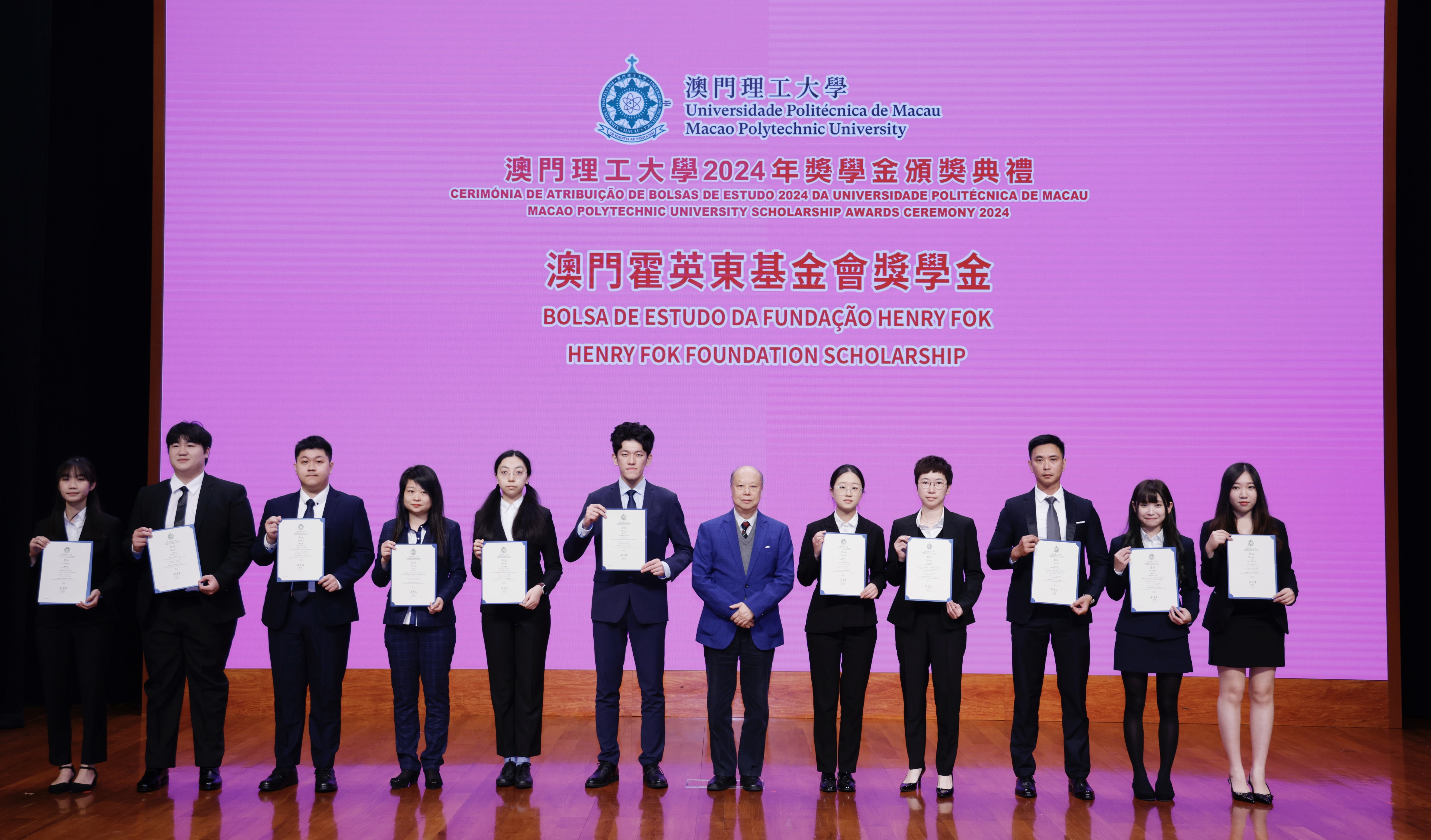 The scholarship awarding organisations and representatives include (listed in no particular order) Mr Teng Sio Hong, Deputy Director of the Education and Youth Development Bureau; Ms Cheong Pui San, Head of Sponsorship Management Division of Macao Foundation; Mr Si Hou, Director-General of Henry Fok Foundation; Mr Lau Sek In, Financial Controller of Macau Productivity and Technology Transfer Center; Ms Belinda Chio, Senior Manager of Human Resources and Sustainability Department of CEM; Dr. Rui Cunha, Secretary-General of SJM Resorts, S.A.; Ms Zuleika Mok, Human Resources Senior Vice President of Wynn Resorts (Macau) S.A.; Ms Phoenix Kwong, Assistant Vice President of Public Relations of Galaxy Entertainment Group; Mr Lourence Ho, Executive Director of Human Resources – Training & Development of Sand China Ltd.; Ms Chloe Wong, Assistant Director of Learning & Talent Development of MGM; Ms Susana de Souza So, Member of the Board of Macau Lawyers Association; Mr Ho Wai Ip, General Assembly Secretary of Ho Chun Kei Charity Association; Mr Au Va On, Banking Business Director, Bank of China Macau Branch; Dr. Christy Lam, Director of SME Business of Industrial and Commercial Bank of China (Macau) Limited; Ms So Kwok Wah, Vice President of Tai Fung Bank Limited; Ms Sue Ou, Public Affairs Department Assistant General Manager of Nam Kwong (Group) Company Limited; Mr Au Hon Man, Chief Operating Officer of LT Game Ltd.; Ms Sharon Pun, Human Resources General Manager of CTM; Mr Lam Sek Teng, Corporate Sales Department Manager of China Telecom (Macau) Company Limited; Mr Lou Kit Long, Chief Executive Officer of Jump Sport Products Company Limited; Seng San Enterprises Ltd.; Mr António de Nascimento Leitão, the Institution of Engineering and Technology, and CPA Australia.
