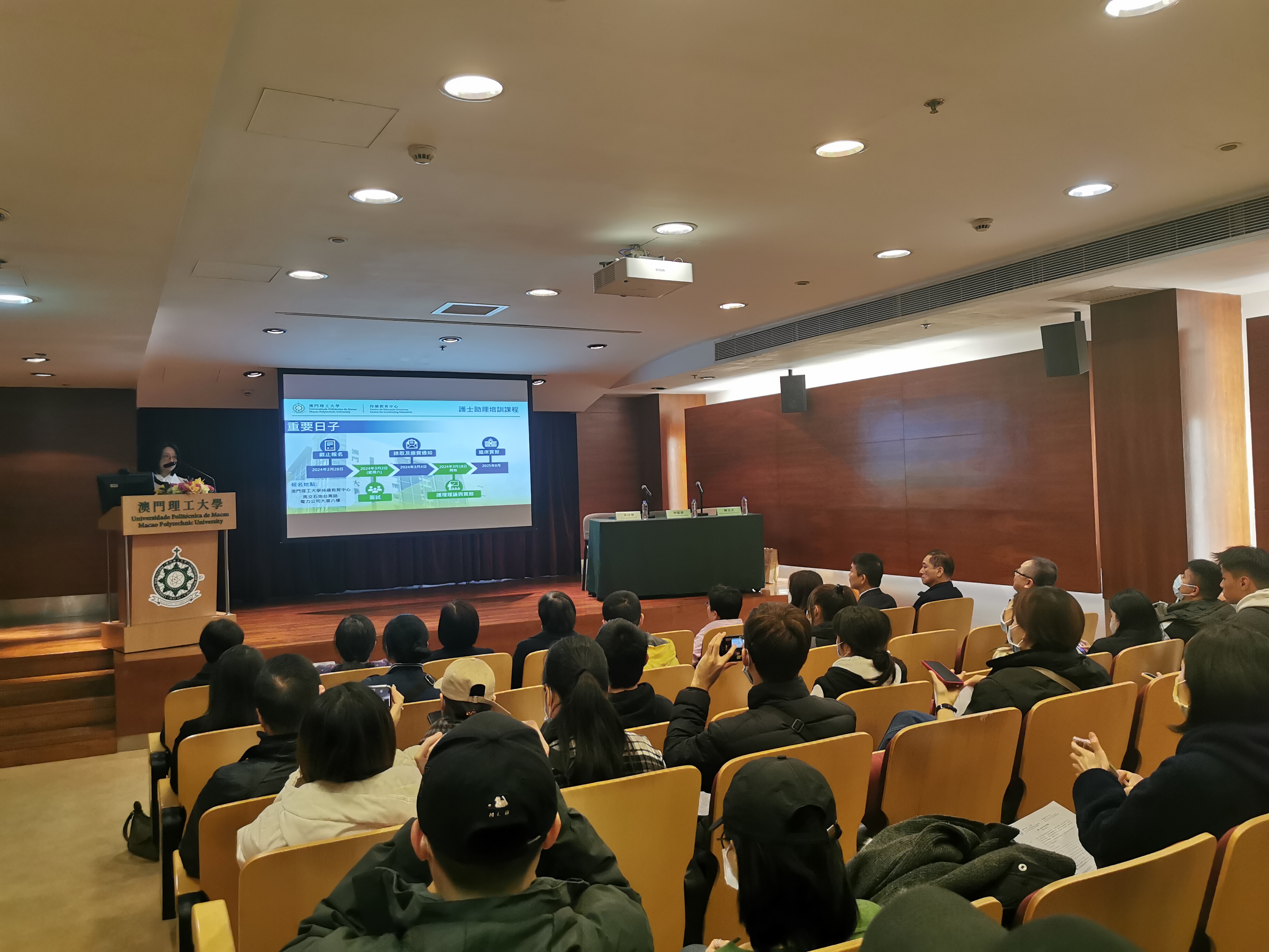 In order to help Macao’s health care industry train professionals and respond to social and institutional development needs, the Centre for Continuing Education of the Macao Polytechnic University will launch the second "Nursing Assistant Training Course" this year to continue to provide training for those who are interested in joining the health care profession. The course has received support from the Health Bureau of the Macao SAR Government. The briefing session was held recently, provided an in-depth understanding of the course objectives, teaching arrangements, etc., and attracted more than one hundred attendees who are from the industry or are interested to enrol in the course.