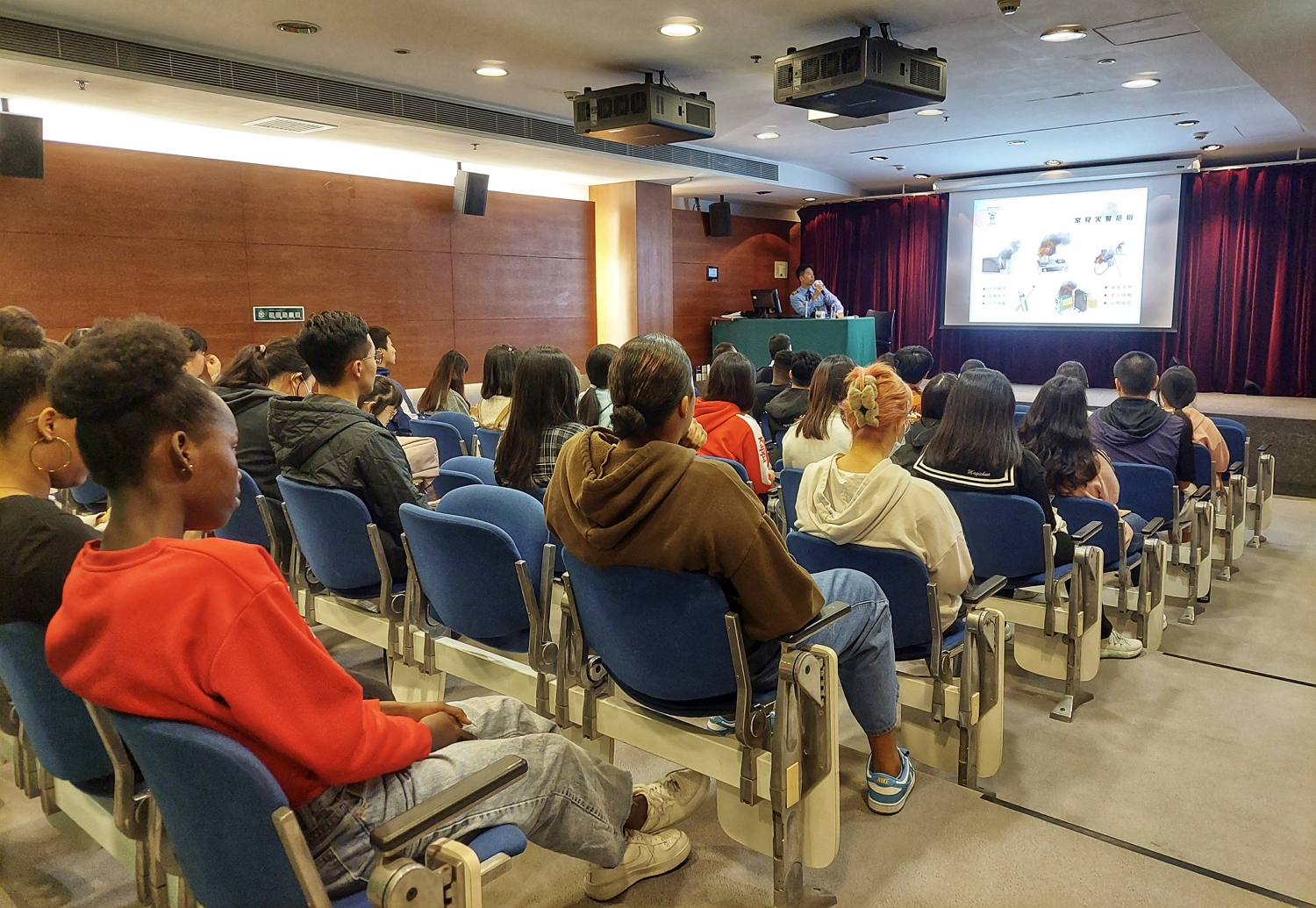 For the purpose of strengthening students’ awareness of fire safety and enhancing their capacities to respond to fires and other emergencies, the Student Affairs Office of Macao Polytechnic University invited representatives of the Macao SAR Fire Services Bureau to deliver a lecture on “Fire Safety and First-Aid Knowledge”. With this lecture, students learned about correct emergency measures for fires, while strengthening their awareness of fire safety and knowledge of basic first-aid theories and skills.