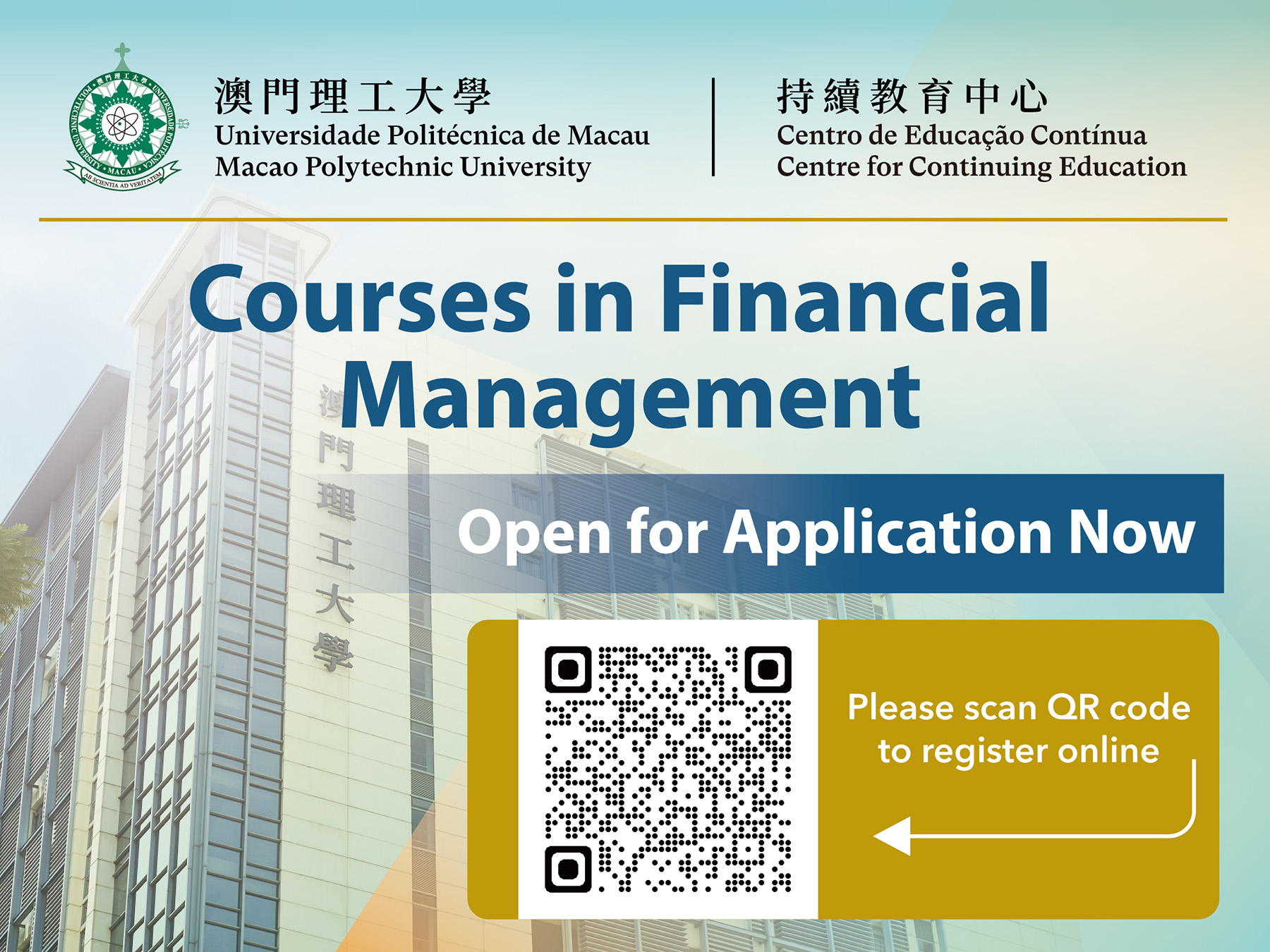 Modern finance is one of the pillar industries under the “1+4” strategy for moderate diversification of economy promoted by the Macao SAR government. In order to proactively respond to the needs of social development and cultivate talents needed for the financial industry, the Centre for Continuing Education of Macao Polytechnic University will offer courses in related fields starting from May. The courses “Financial Technologies and Innovation Practice”, “Financial Tools and Market Applications”, “Bond Market Practice” and “Theories and Practice of Financial Investment” are suitable for financial market practitioners or those who aspire to pursue a career in finance related industries, as well as those interested in the theories and practice of finance.