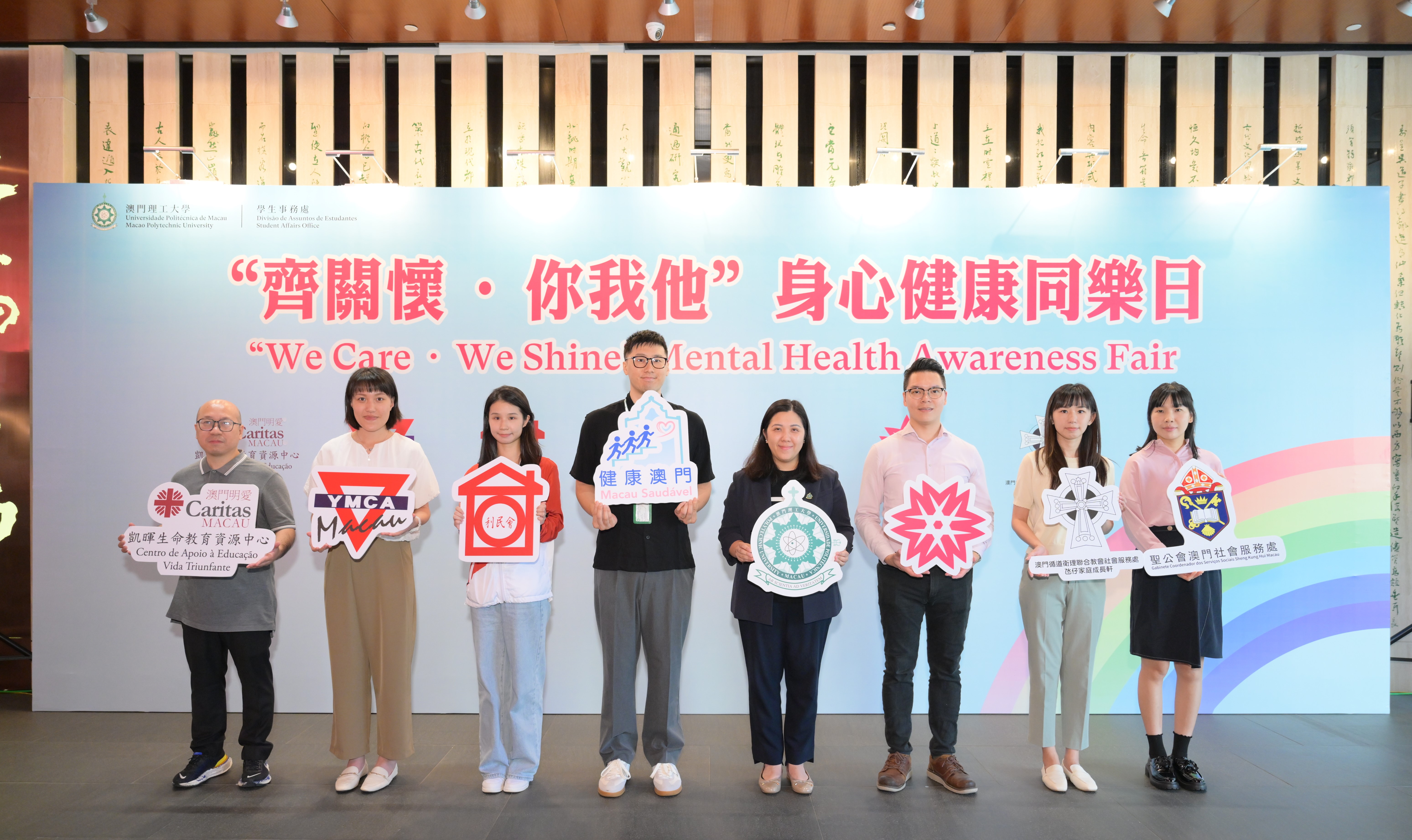 In response to World Mental Health Day on October 10th and in order to promote mental health education, enhance university students’ attention to mental and physical health, and strengthen exchanges between higher education institutions and local social service organisations, the Student Affairs Office of Macao Polytechnic University held the “We Care. We Shine” Mental Health Awareness Fair. This event brought together government departments and several social service organisations to jointly safeguard students’ mental and physical health. The event garnered about 2,000 individuals, fostering mental well-being and nurturing a supportive environment.