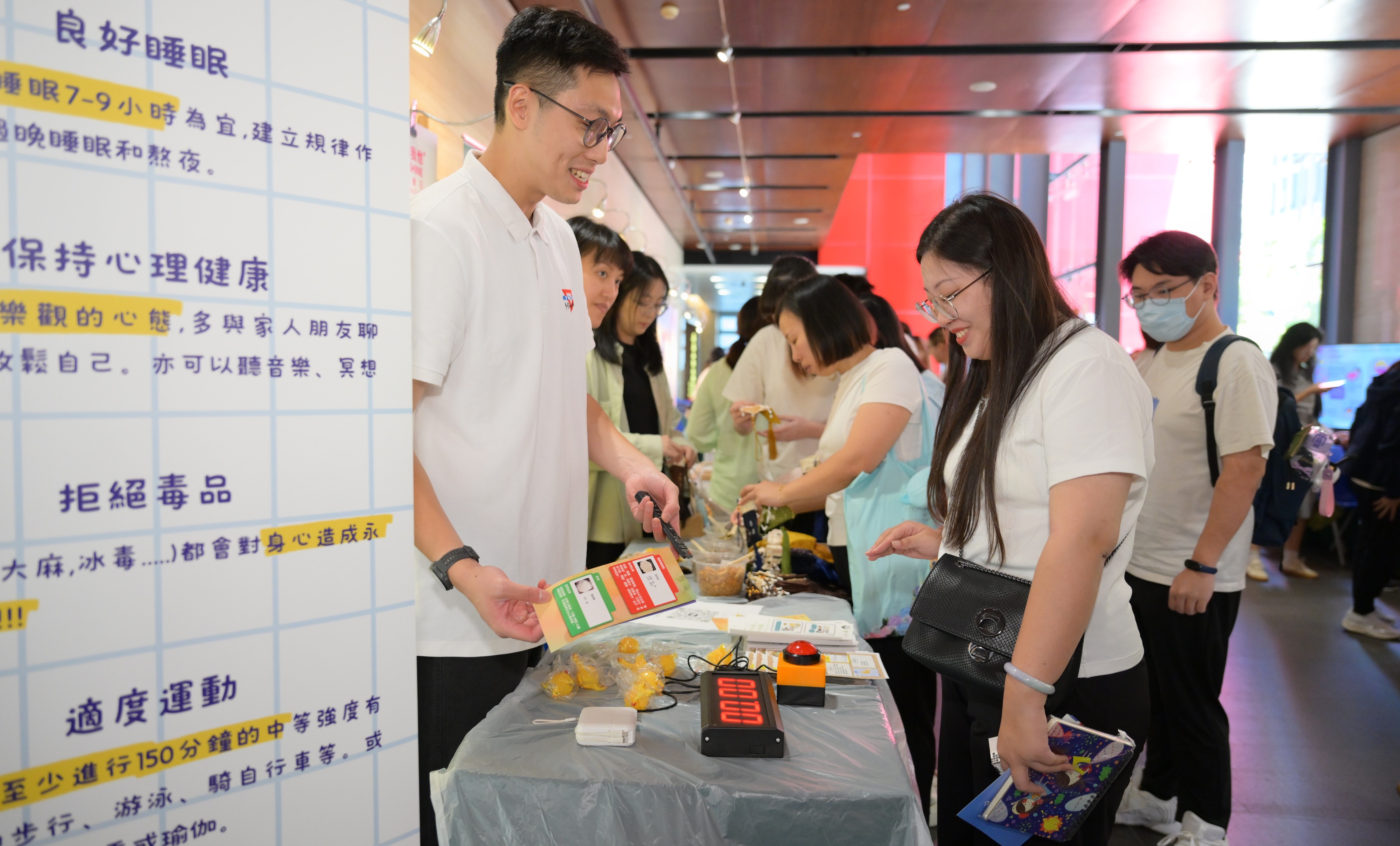 The theme of the fair was “We Care. We Shine”. The event featured interesting booth games, interactive workshops, and information on mental and physical health, including activities such as “Ten-Second Relaxation Techniques”, “Stress-relief Sachet Making”, “A Day to Breathe”, “Talk to Me, Listen to My Heart”, “Emotional Awareness”, “Understanding Depression”, “Smart Financial Management”, and “Health Check-up Stations”. These activities allowed students to learn about mental and physical health in a relaxed and enjoyable way. Participating students said that the interactive games and workshops effectively increased their attention to mental and physical health and taught them many tips for maintaining mental health and reducing stress.