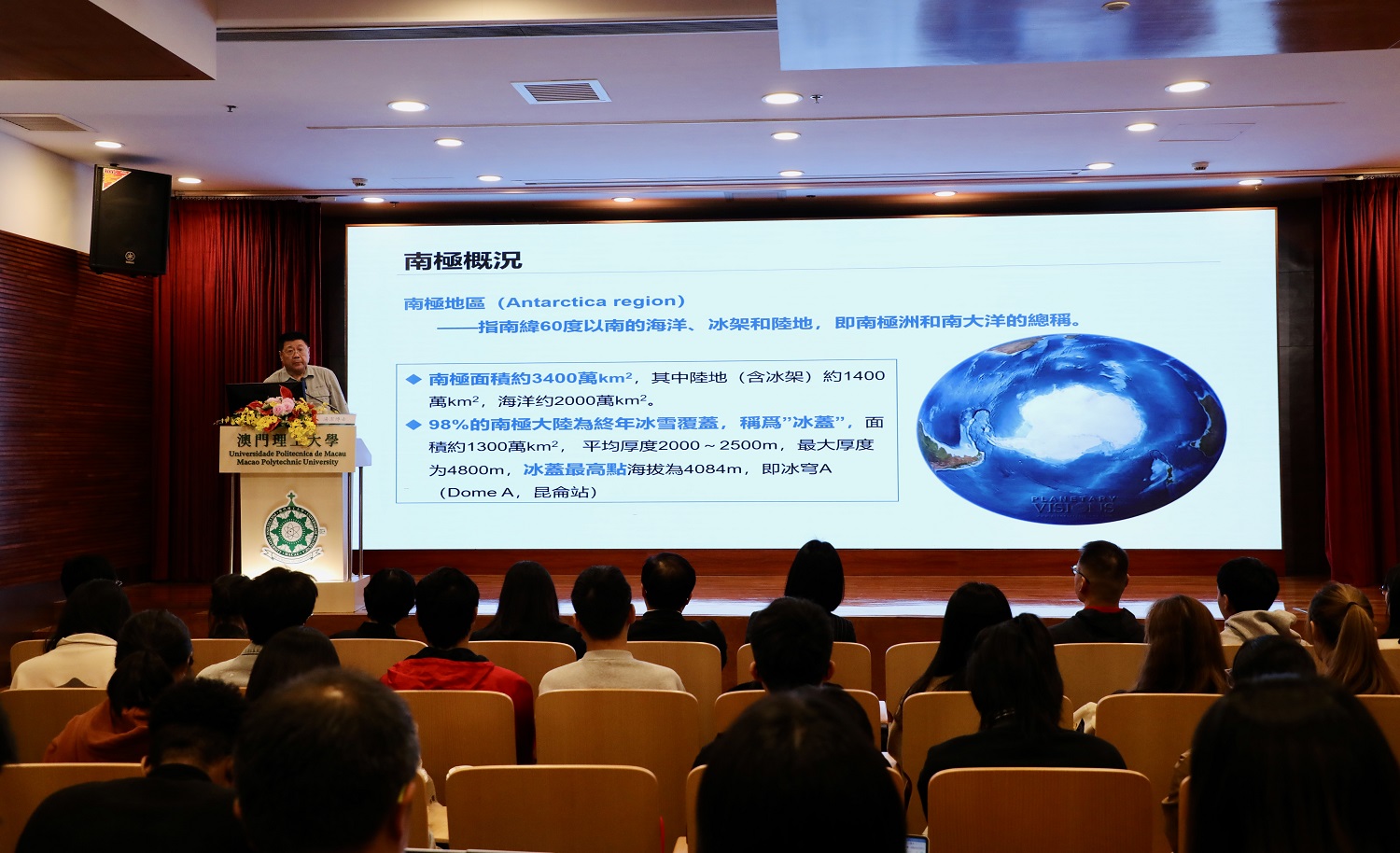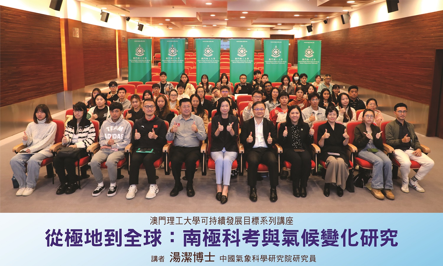 To promote the United Nations Sustainable Development Goals and raise awareness among university students about global warming, the Student Affairs Office of Macao Polytechnic University organised a lecture on sustainable development goals titled “From Polar to Global: Antarctic Scientific Expeditions and Climate Change Research”. The lecture was delivered by Dr. Tang Jie, a researcher at the Chinese Academy of Meteorological Sciences. The Acting Rector of Macao Polytechnic University, Lei Ngan Lin, the Dean of the Faculty of Applied Sciences, Lam Chan Tong, and numerous university members and students attended the lecture.