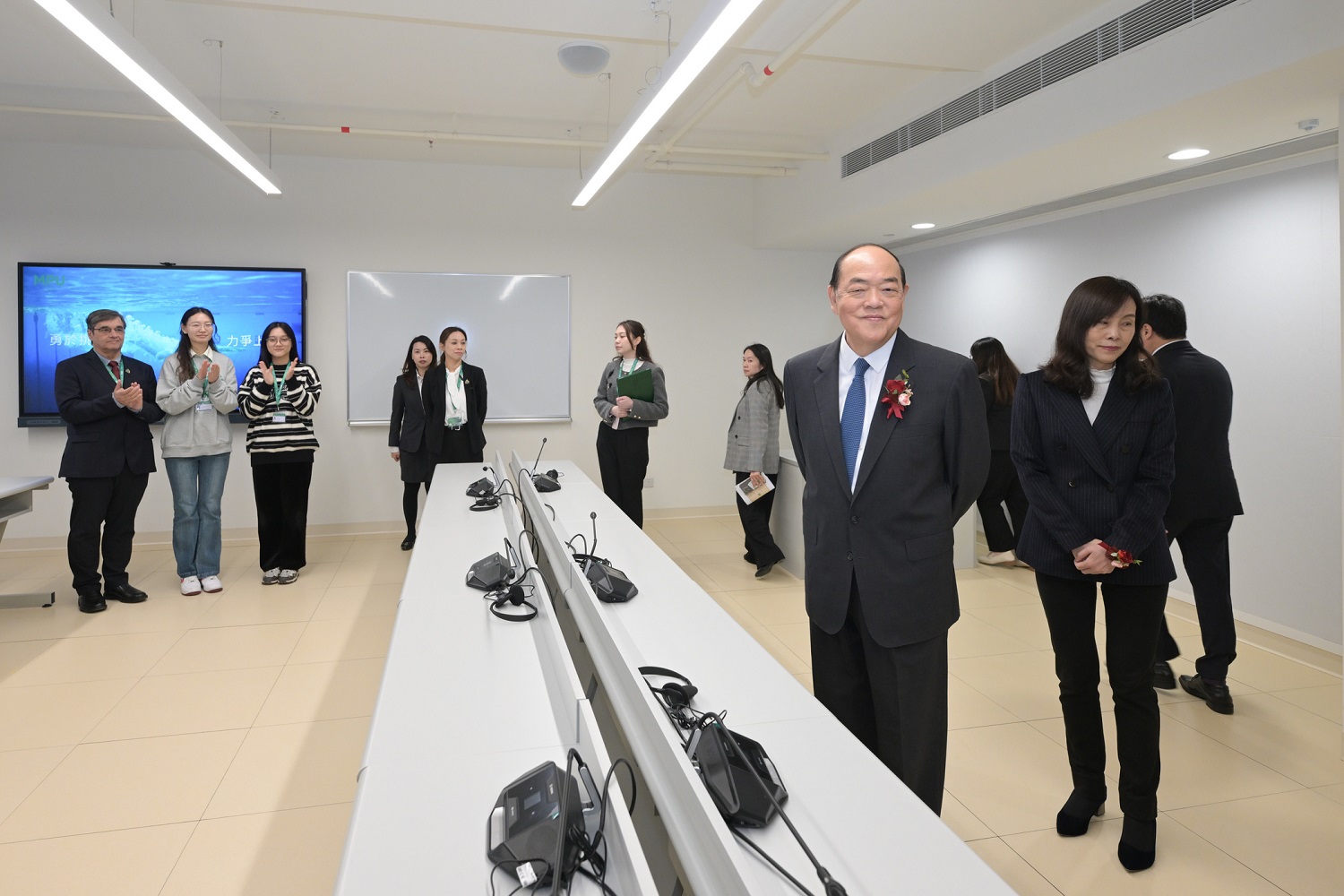 At the inauguration ceremony, the guests enjoyed a traditional lion dance performance, toured the various teaching and research facilities and equipment within the Academic Building and attended teaching demonstrations. They had friendly interactions with faculty and students, fostering a joyful and pleasant atmosphere. The event was also attended by over 100 other participants, including officials from relevant departments of the Macao SAR Government, members of the University Council, faculty, staff, and alumni.