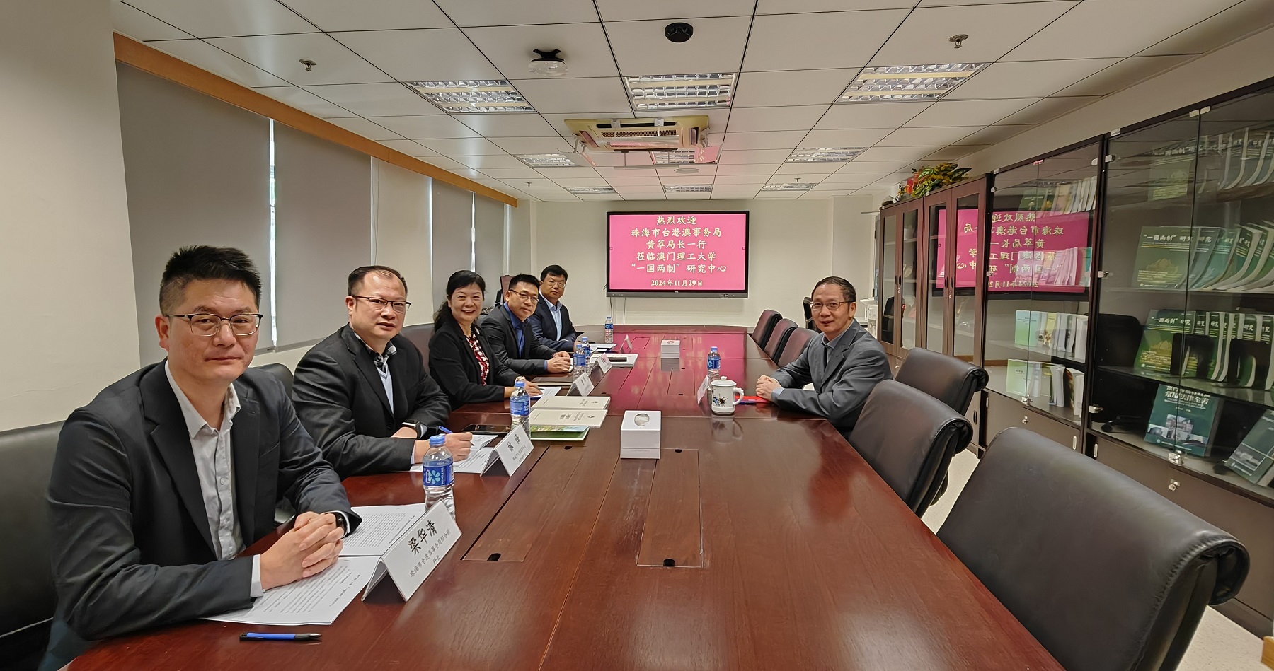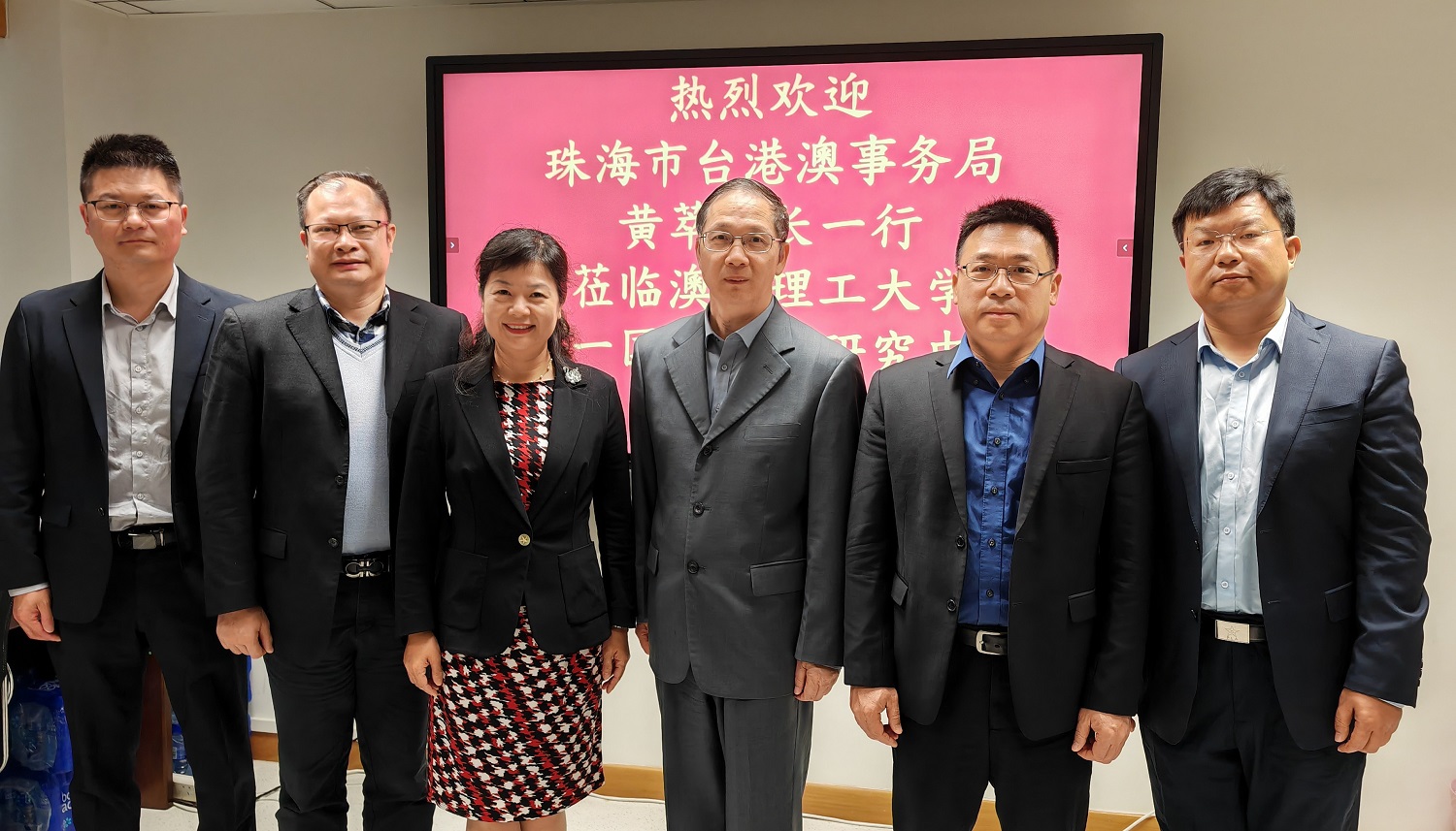 Visitors also included: Huang Yuanhong, Deputy Director of the Taiwan, Hong Kong and Macao Affairs Bureau of Zhuhai; Lin Yi, a fourth-level researcher; Liang Huaqing, the Chief of the General Office of the Bureau; and Zhang Qian, the Chief of the Policy Research Office.