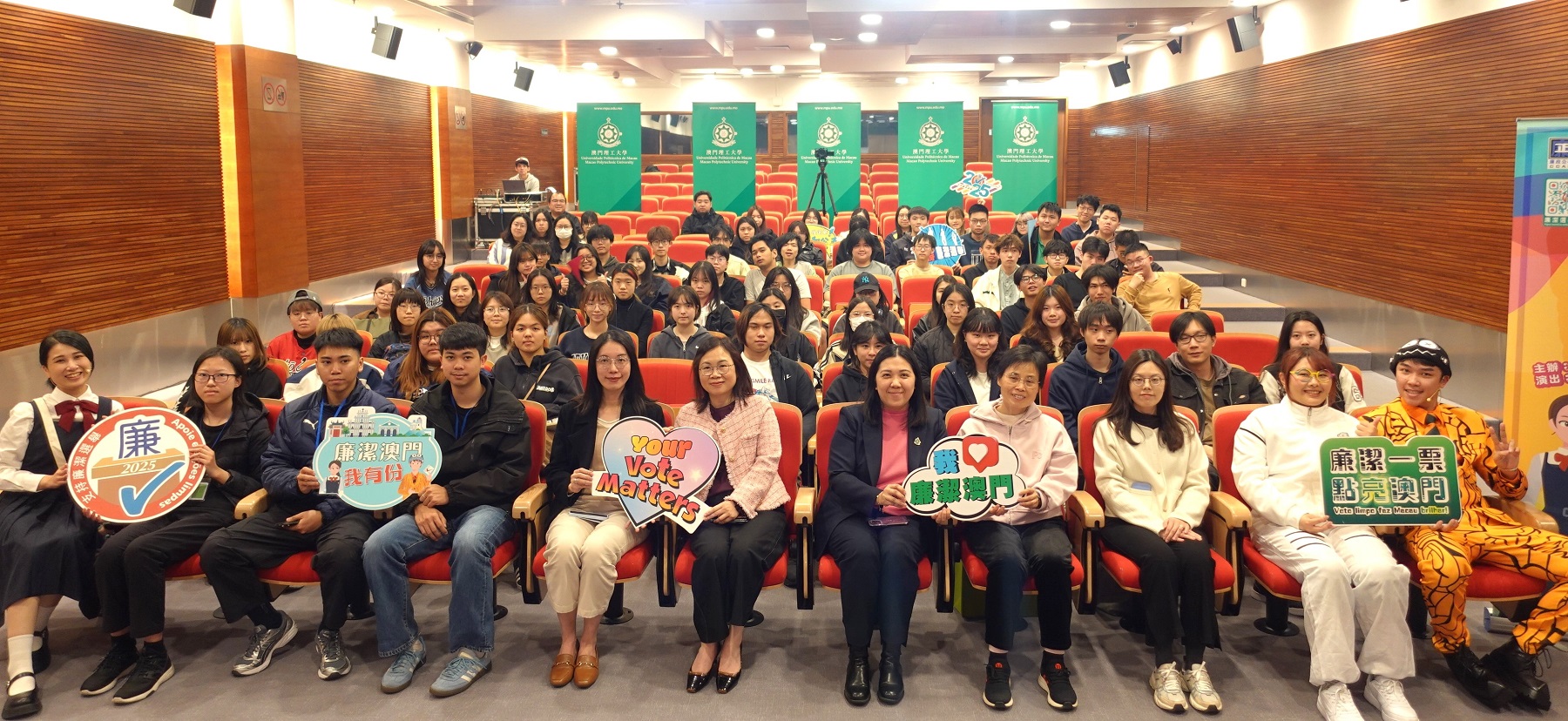To promote the spirit of integrity and lawfulness and deepen young students’ understanding of clean elections, the Student Affairs Office of Macao Polytechnic University (MPU) invited the Commission Against Corruption to host the “Integrity Express” school drama tour on campus. The play re-enacts various scenarios and reflections before elections, guiding teachers and students to understand the electoral process. Through scenario re-enactments and audience interaction, it clarifies the attitudes and responsibilities citizens should uphold when facing various “campaign assistance” temptations, conveying the spirit of integrity and lawfulness.