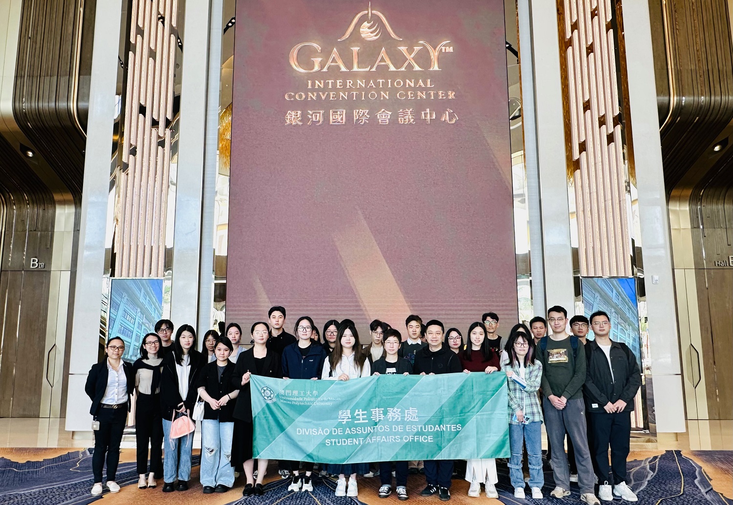 To help students stay updated on industry development and employment market trends, and to connect academic knowledge with career development, the Student Affairs Office of Macao Polytechnic University (MPU) arranged an Enterprise Visit under its career development activity series and organised a student visit to hotels and facilities under the Galaxy Entertainment Group. Through on-site visits and discussions, students expanded their knowledge of how enterprises function and are managed, gained insights into the latest market trends and talent requirements, and investigated potential career paths.