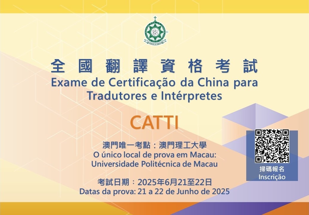 The 2025 China Accreditation Test for Translators and Interpreters (CATTI) will be held from June 21 to June 22 at Macao Polytechnic University (MPU). As the sole official CATTI test centre in Macao, the Faculty of Languages and Translation at MPU will organize the translation proficiency tests in both English and Portuguese. Registration for the tests is now open, with the deadline on May 14. Translation professionals from all sectors are welcome to participate.