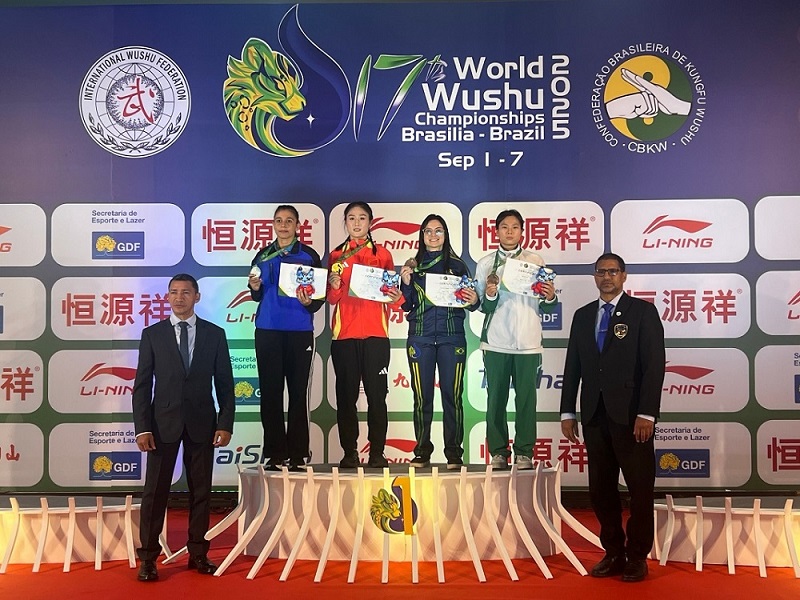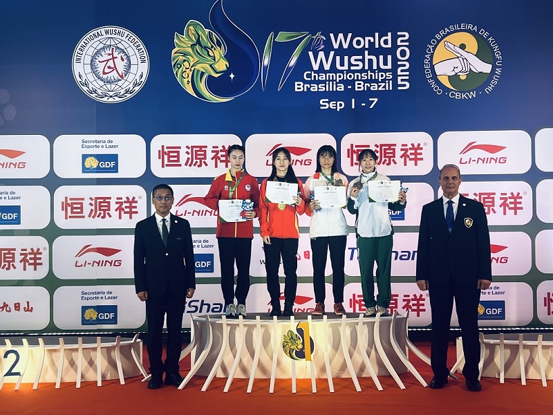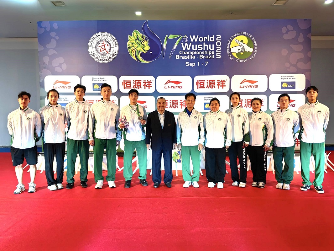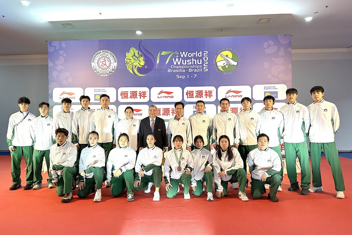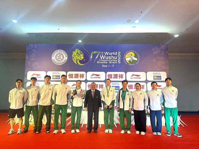 The 17th World Wushu Championships were held in Brasília, the capital of Brazil, drawing participants from nearly 90 countries and bringing together around a thousand top martial artists from around the globe. Students and alumni from Macao Polytechnic University (MPU) delivered outstanding performances, representing Macao in various events including Men’s Group Sparring, Women’s Staff, Men’s Spear, Women’s Sword, Women’s 60kg Sanda, and Women’s 48kg Sanda. Their efforts earned an impressive haul of one gold, two silver, and three bronze medals—bringing pride to both Macao and the university.