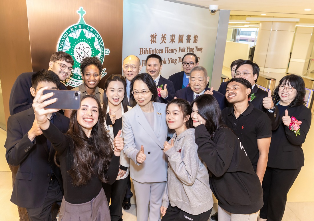 On the occasion of the 45th anniversary of Macao Polytechnic University (MPU), the unveiling ceremony of the Henry Fok Ying Tung Library was held on the morning of 5 December 2025 at the main campus. The ceremony was officiated by O Lam, Secretary for Social Affairs and Culture of the Macao SAR government; Li Yongxian, Deputy Director of the Education and Youth Affairs Department of the Liaison Office of the Central People’s Government in the Macao SAR; Chui Sai Cheong, President of the MPU Council and President of the Trustees Committee of the MPU Development Foundation; Ian Fok Chun Wan, Chairman of the Henry Fok Foundation and Vice President of the Trustees Committee of the MPU Development Foundation; Marcus Im, Rector of MPU; Chan Hong, Chief Supervisor of the Chinese Educators’ Association of Macau; and Chow Pak-fai, President of the Macao Catholic Schools Association. They were joined with representatives from various sectors of society, members of the MPU Council and MPU Development Foundation, as well as faculty, staff, students and alumni, all witnessing this significant event. During the visit to the Henry Fok Ying Tung Library, Ms. O Lam engaged with MPU students and conveyed her best wishes for their studies and future success.