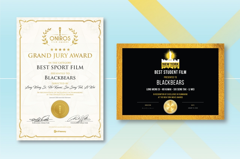 With the “Daring, Innovative, Persistent” spirit in perusing dreams, the MPI student documentary BLACKBEARS receives the Best Student Film of New York Movie Awards in the U.S. and the Grand Jury Award of Best Sport Film of Oniros Film Awards in Italy. Initiated as a class project, MPI students HO Ka Wai, LONG Weng Si, SIO Seng Tak and LI Wei have gone the distance and brought this Macao local story to the world stage, conglomerating theory and practice, learning and experience, and academia and techniques fostered by MPI’s distinctive programme of Bachelor of Arts in Design.