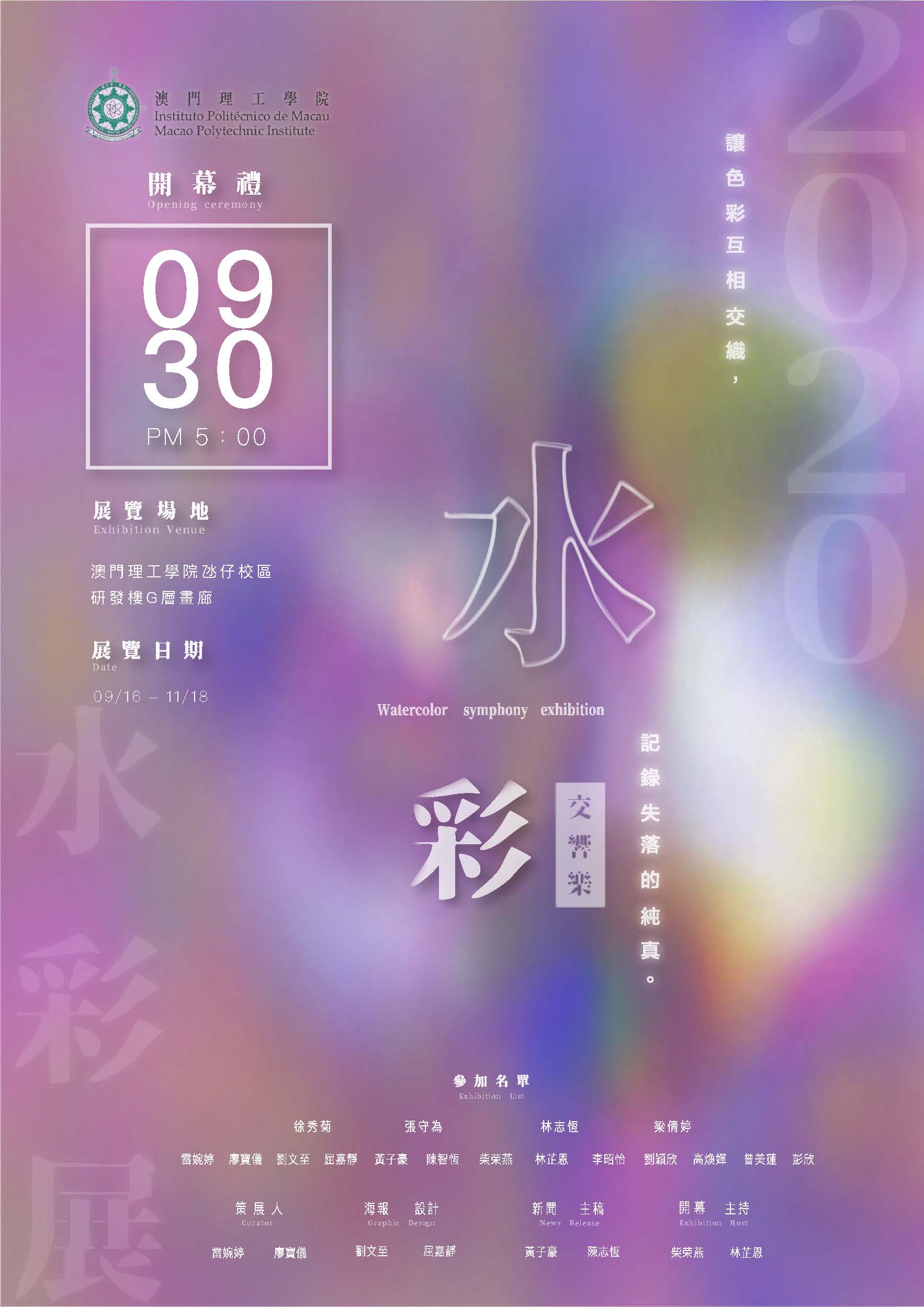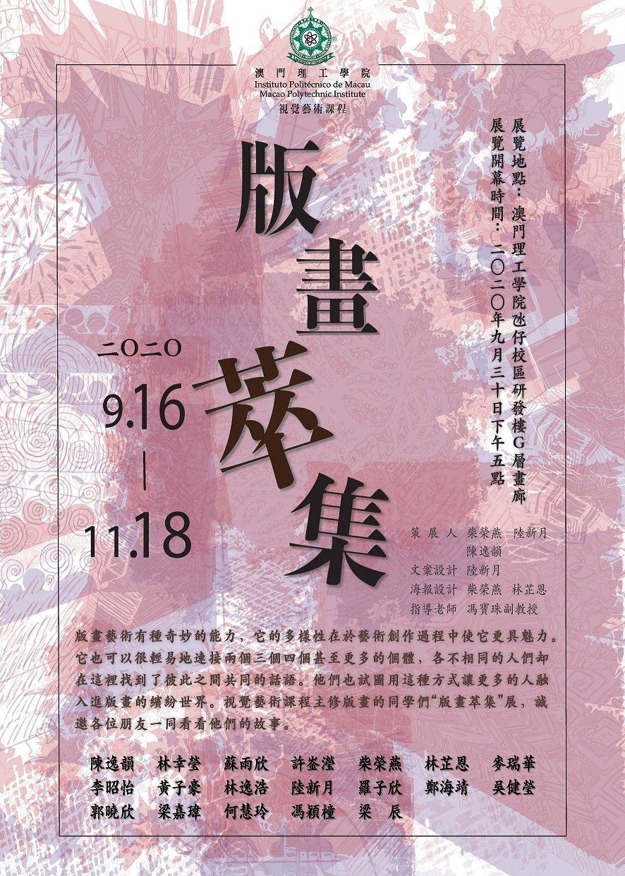 The opening ceremony of the fine arts exhibitions “Watercolour Symphony” and “Exhibition of Printmaking Collection” presented jointly by teachers and students from the Visual Arts Programme of the Macao Polytechnic Institute (MPI), will take place at the Art Gallery – Floor G, the Research and Development Building on the MPI Campus in Taipa, at 17:00 on 30 September 2020. All interested parties are welcome to visit.