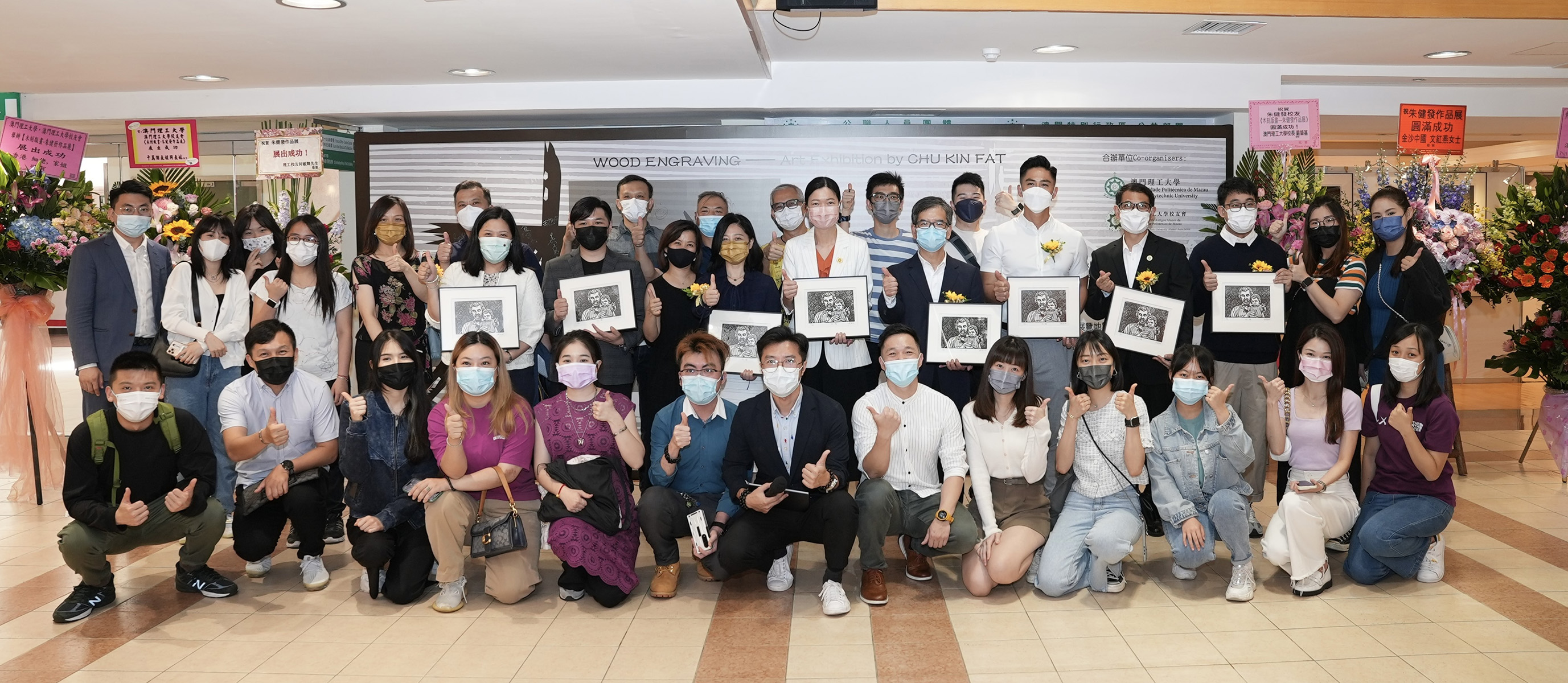 The opening ceremony of “Wood Engraving — Art Exhibition by Chu Kin Fat” took place on the afternoon of 23rd April at MPU, and was presided over by Lei Ngan Lin, the Vice Rector of MPU; Wen Hongyan, Senior Vice President of Human Resources of Sands China Ltd; Liu Kun Him, the President of the MPU Alumni Association; Lai Ming Hoi, Acting Dean of the Faculty of Arts and Design; Chan Teng Fong, Office Director of the Diocesan Catholic Education Committee; Jose, Ng Teng Chio, Vice Principal of Colégio Diocesano de São José; and Lao Weng Ian, Head of the Student Affairs Office of MPU. The main medium of the exhibition is wood engraving prints, which can be divided into two themes, namely “Catholicism” and “life and character portraits”. In his speech, Chu Kin Fat said that the works, the reproduction of real objects using wood engraving techniques, have undergone spiritual transformation through the artist’s hands and the works are presented in such a specific form to everyone who appreciates them.