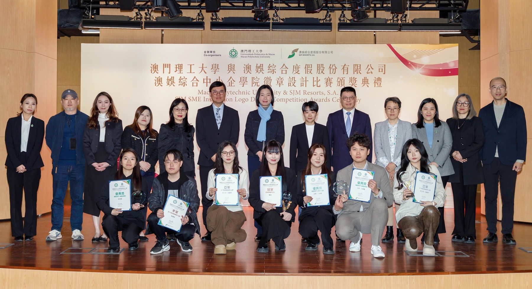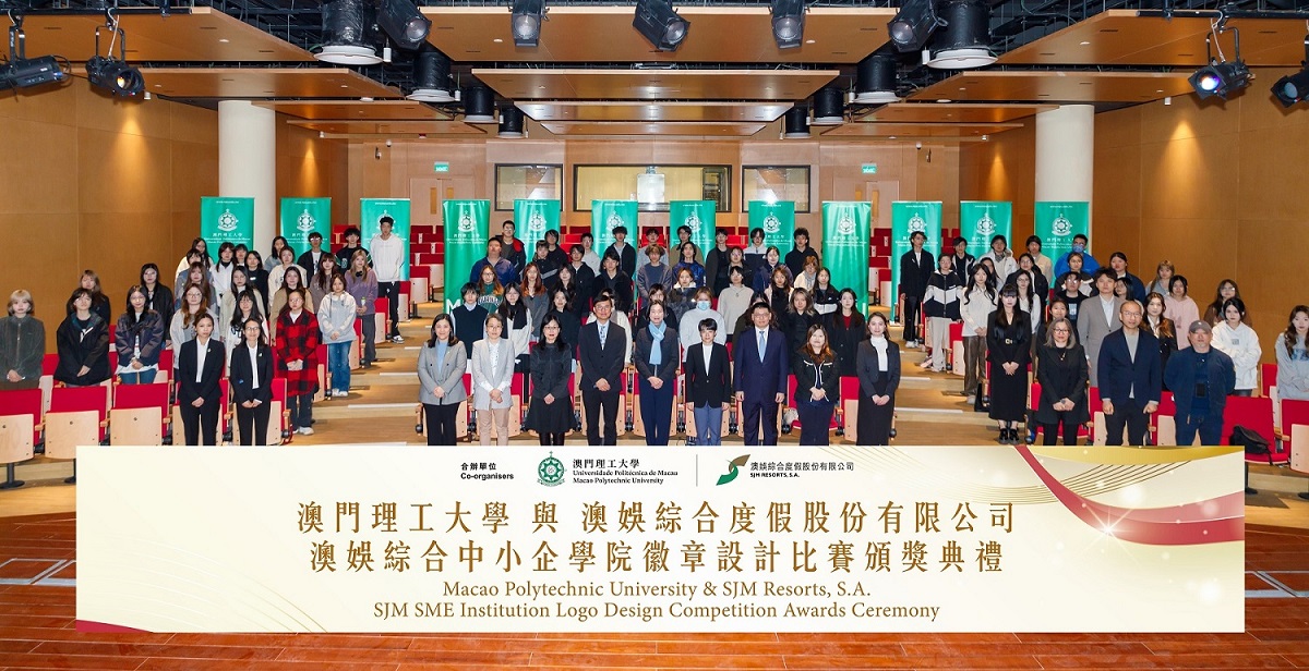 To promote the development of cultural and creative industries in Macao, Macao Polytechnic University (MPU) partnered with SJM Resorts, S.A. (SJM), to host the “SJM SME Institution Logo Design Competition”, along with its award ceremony, supported by the Macao Chamber of Commerce. The ceremony took place at the MPU Academic Building, aiming to enhance collaboration between MPU and enterprises while providing a platform for a new generation of designers to exchange ideas and showcase their talents. This initiative also seeks to promote the region’s unique cultural characteristics and elevate the brand of “Made in Macao”.