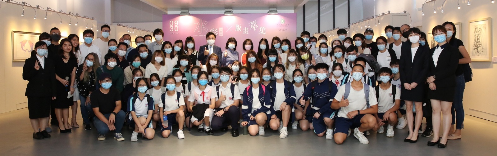 A cerimónia de inauguração da exposição foi presidida pela Presidente do Conselho de Administração do Fundo das Indústrias Culturais, Dra. Lam Wan Nei, o Presidente do IPM, Professor Doutor Im Sio Kei, a Chefe Substituta do Departamento de Museus do Instituto Cultural, Dra. Lam Weng Na, a Directora da Escola Superior de Artes do IPM, Professora Hsu Hsiu-Chu, e o Coordenador do curso de licenciatura em artes visuais, Doutor Chang Sow-Wei. Durante a cerimónia, os convidados, em conjunto com duas representantes dos alunos participantes, Mak Soi Wa e Lio Pou I, trasfegaram tintas de várias cores de uns copos para outros, acto alusivo ao colorido e à fusão de aguarela e gravura, desejando também o sucesso desta exposição e dando felicitações pela entrada em funcionamento da galeria do Edif. Investigação e Desenvolvimento no campus da Taipa do IPM.