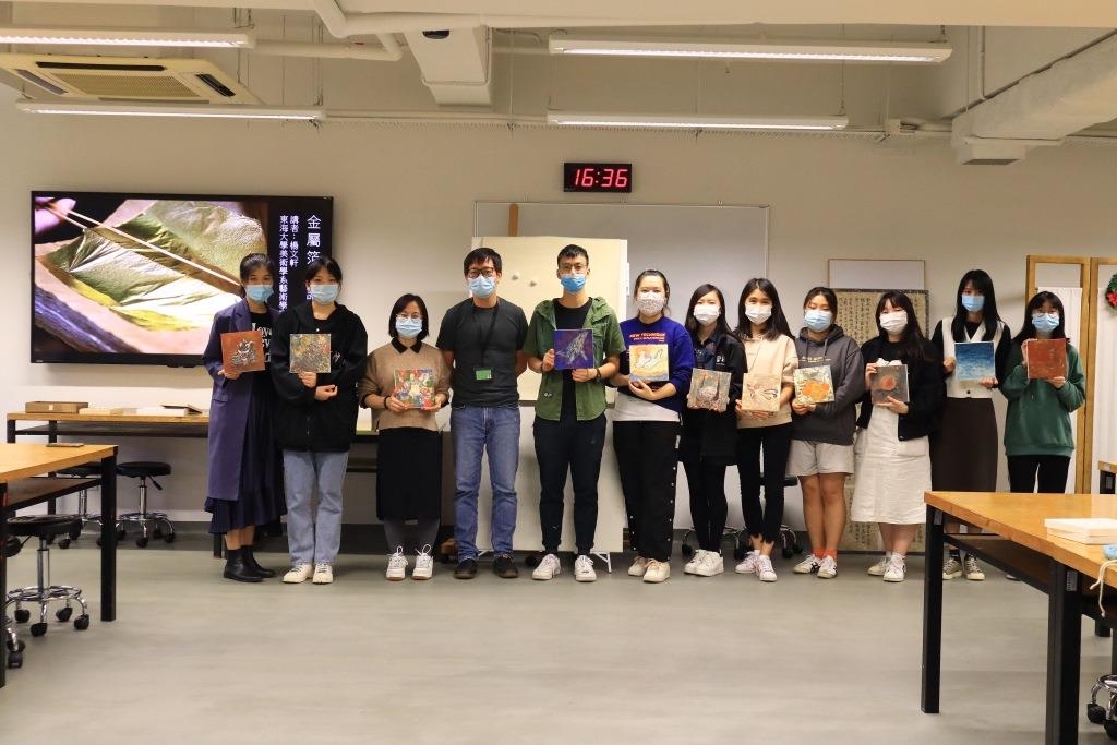 Na sessão prática, o Dr. Ieong Man Hin explicou, em primeiro lugar, a forma de utilização dos respectivos instrumentos e o processo de colagem de papéis metálicos, e em seguida, deu início às práticas, permitindo aos alunos participantes terem uma experiência pessoal de todo o processo de criação. O workshop realizou-se num ambiente caloroso e de forte interacção, no qual os alunos apresentaram activamente as opiniões e levantaram questões relacionadas.