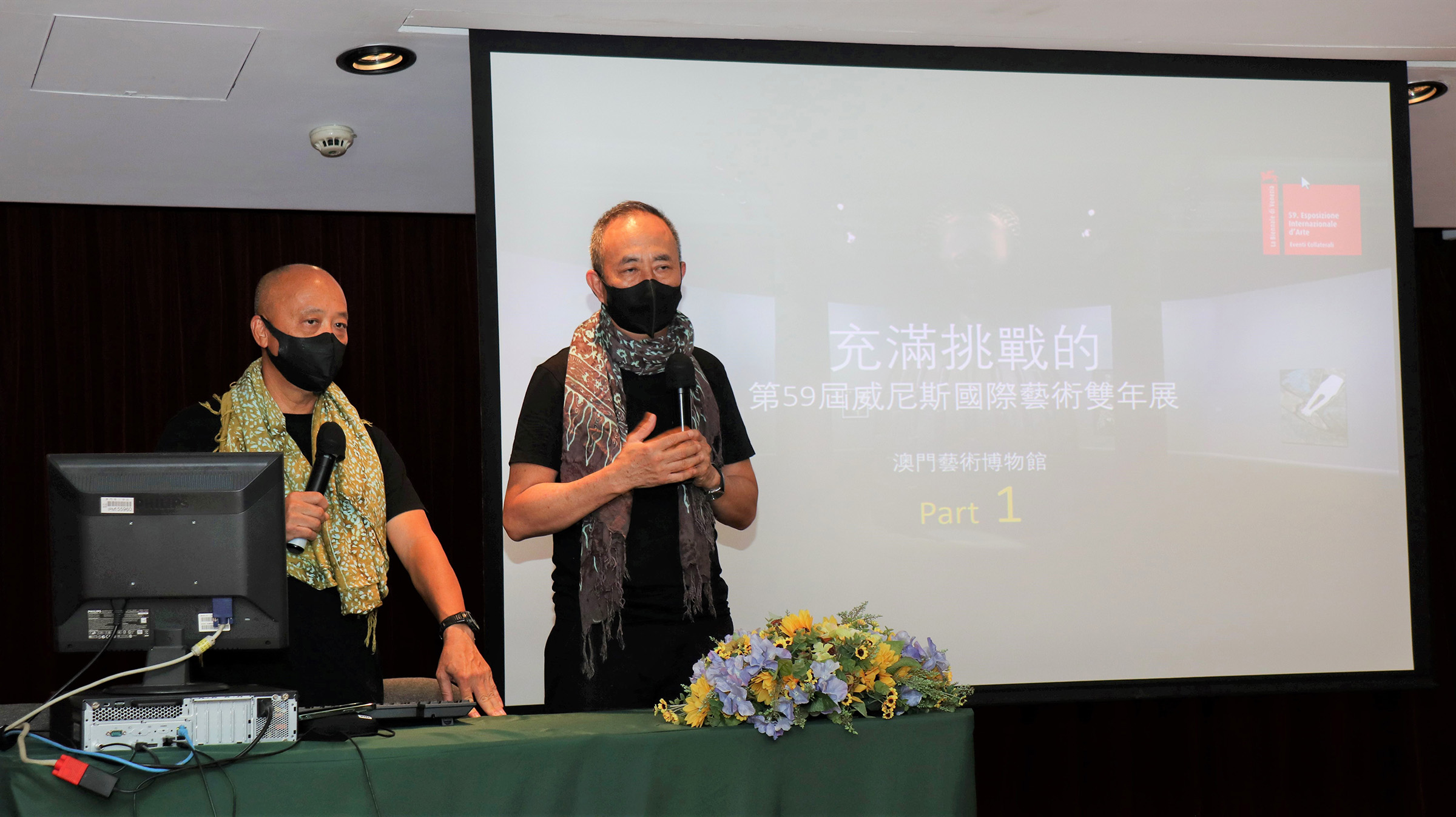 Durante a palestra, os dois artistas partilharam as suas experiências de participação na La Biennale di Venezia, iniciando a palestra com uma explicação sobre a origem desta Exposição Internacional e aproveitando as obras desta edição da exposição para analisar os progressos dos artistas em termos do tema de criação, conteúdo e materiais dos media, bem como partilhando as próprias experiências nesta edição da Exposição de Veneza e apresentando as características artísticas da “Alegoria dos Sonhos” exposta no Evento Colateral de Macau. Segundo o Colectivo YiiMa, a exposição retrata o pensamento e as formas do ser humano se adaptar face à sua circunstância, esperando os dois artistas, através das suas obras, revelar o ambiente cultural único de Macau decorrente da sua história de 400 anos de integração das culturas chinesa e ocidental e a vontade obstinada de viver neste meio.