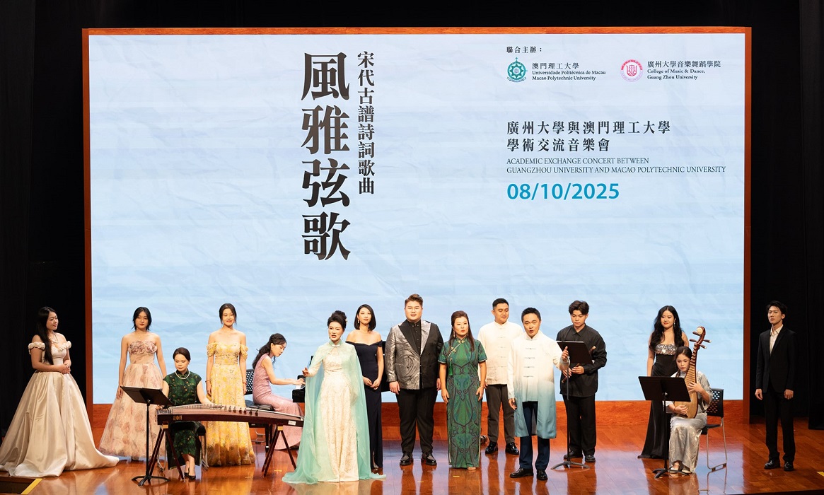 A Faculdade de Artes e Design da Universidade Politécnica de Macau (FAD-UPM), em colaboração com a Faculdade de Música e Dança da Universidade de Guangzhou, realizou um concerto intitulado “Melodia Elegante – Canções de Poesia da Dinastia Song com Notações Antigas”. O Subdirector da Faculdade de Música e Dança da Universidade de Guangzhou, Wang Hongtao, e vários académicos de música foram convidados a dar orientação e actuar na UPM. O concerto atraiu muitos estudantes, professores e o público em geral, demonstrando os resultados extraordinários do ensino da música da UPM e representando um novo capítulo no desenvolvimento do sector musical de Macau.
